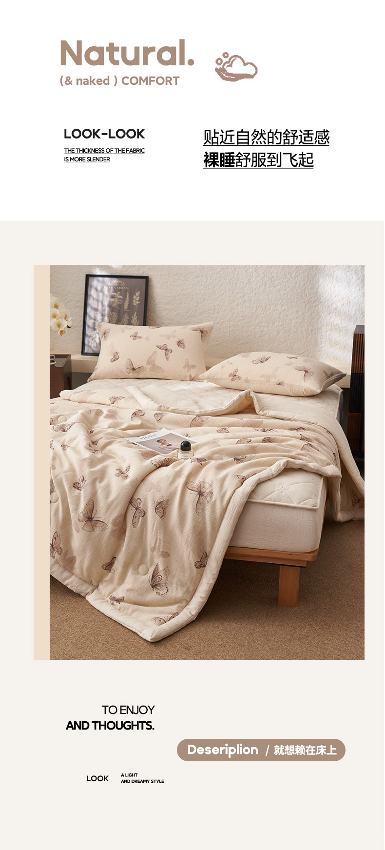 吾诺家居 2026新款棉麻系列-棉麻印花棉花夏被 水墨蝴蝶