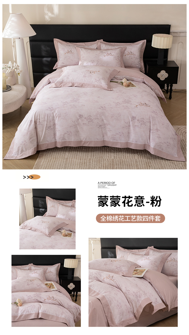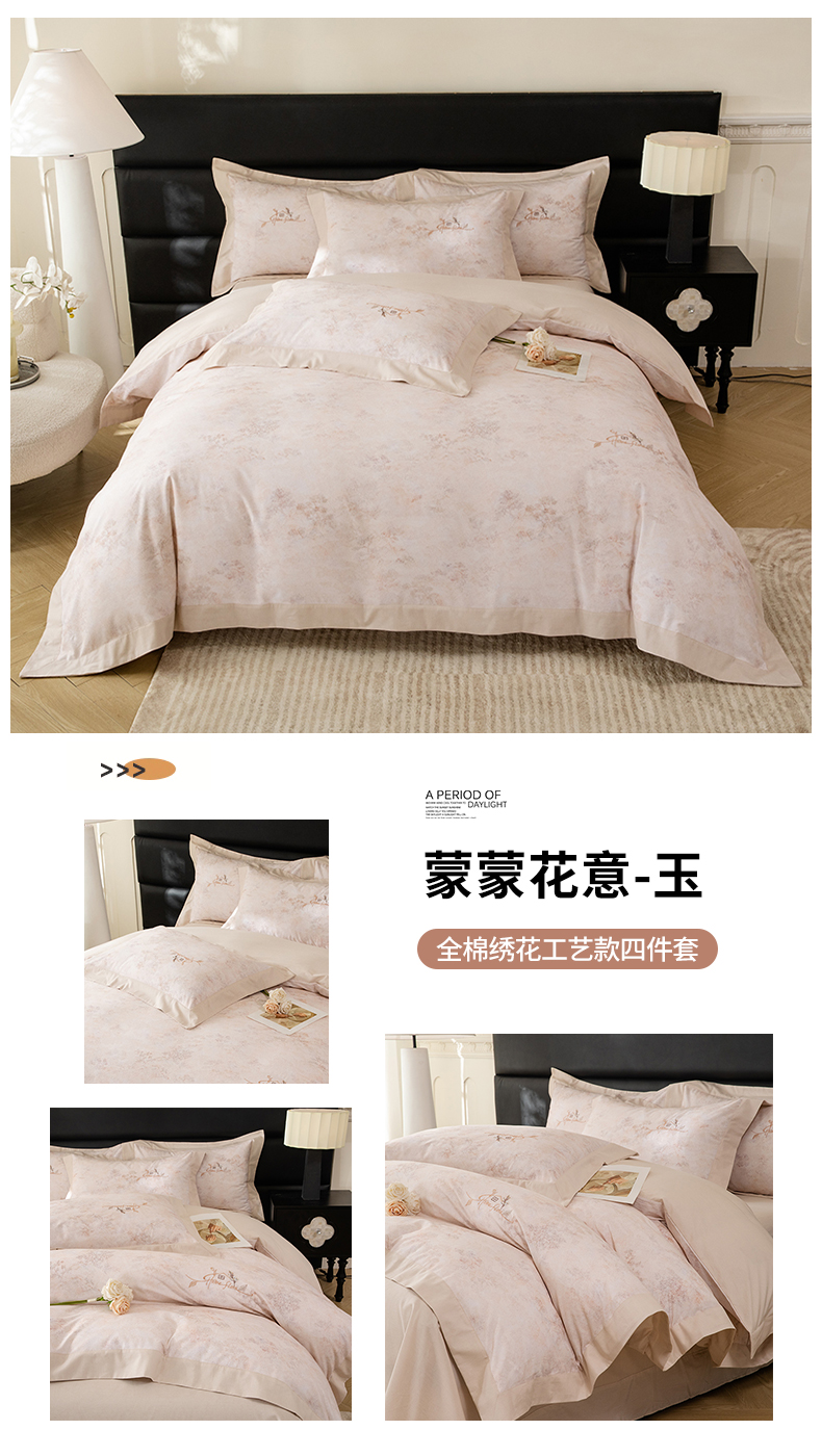 (总)巧玲珑 2025新款法式蕾丝大花边印花60支进口长绒棉四件套,繁花似锦-粉,繁花似锦-咖,繁花似锦-绿,花枝曼舞-豆沙,花枝曼舞-灰,花枝曼舞-兰,沐春风-绿,沐春风-紫,沐悠拾光-绿,沐悠拾光-驼,阳光花房,月松影,花浅语-豆沙,花浅语-灰,花溪-豆沙,花溪-灰