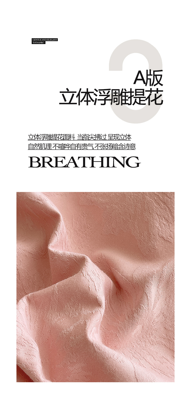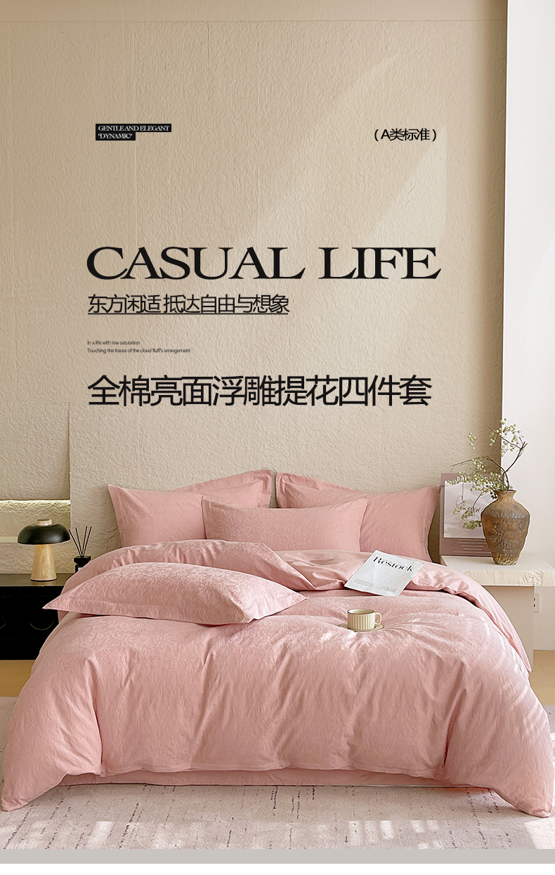 宜家坊 2026新款A类全棉纯棉亮面浮雕提花四件套 梵花绘-浓粉