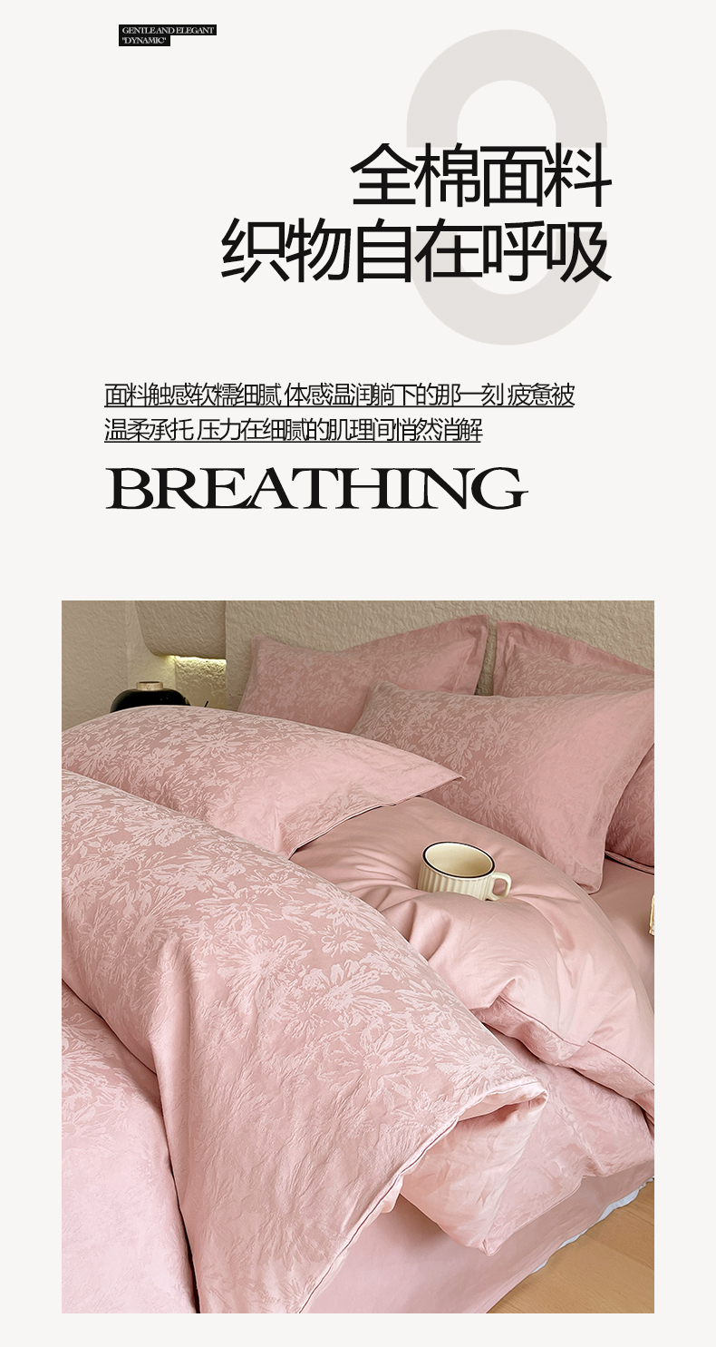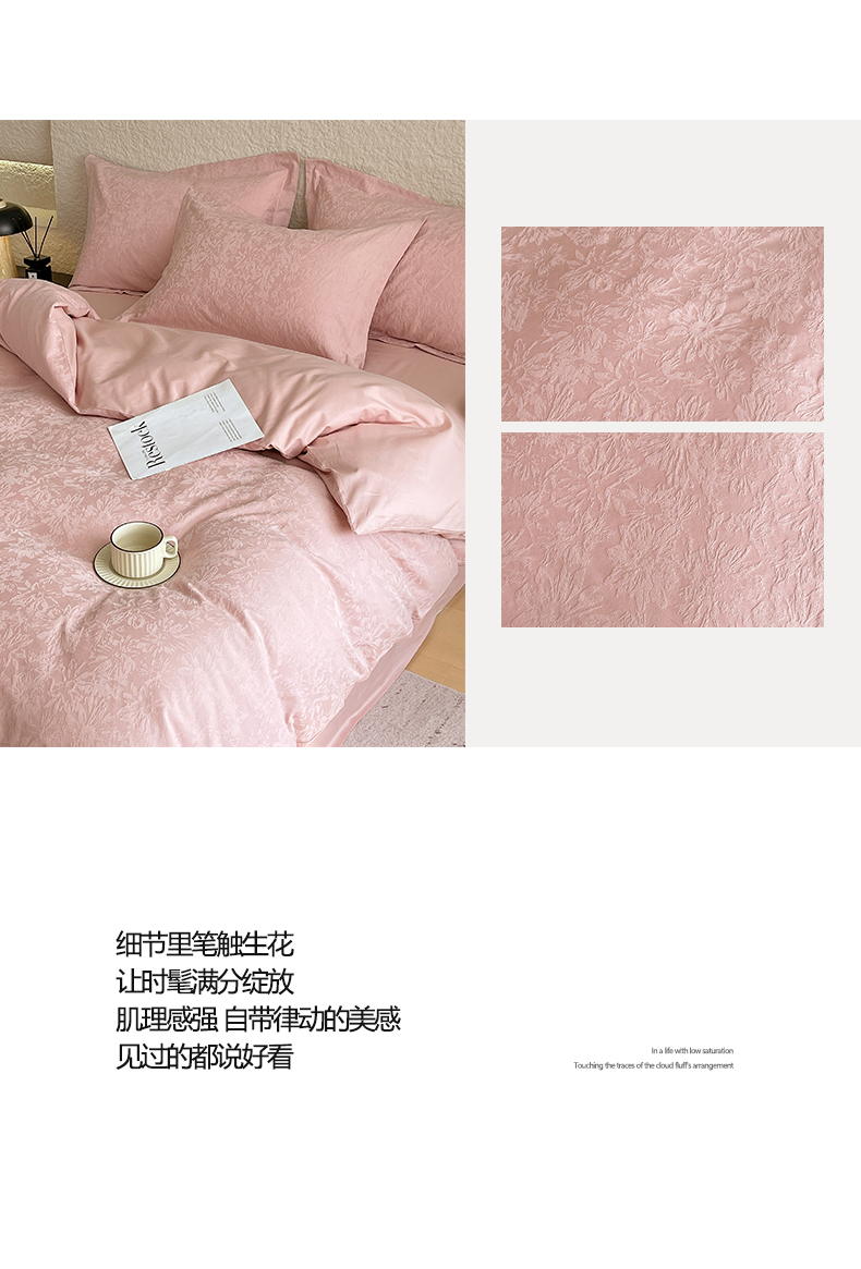 商品名称:宜家坊 2026新款A类全棉纯棉亮面浮雕提花四件套 梵花绘-浓粉
