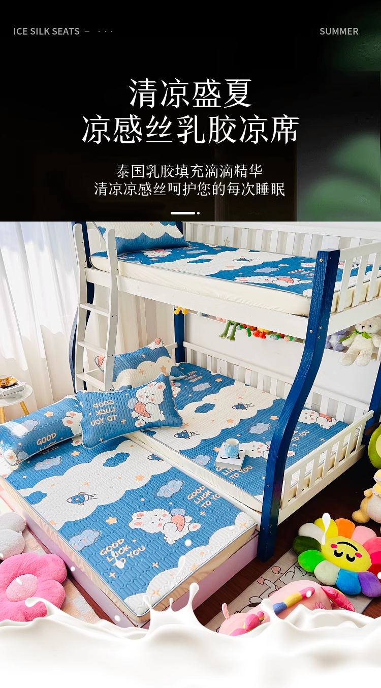 当前位置: 91家纺网 > 商品网购 > 床上用品 > 凉席 > 乳胶凉席 > 小虾米 2026新款凉感丝乳胶凉席上下床床笠 快乐宝贝