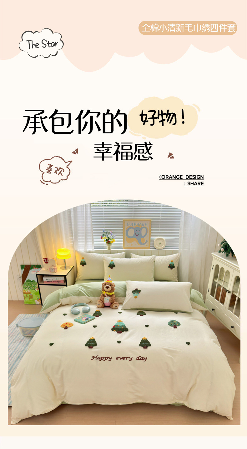 (总)如意朵 2026新款13372全棉毛巾绣小清新四件套(专版花型),彩色星星,躲猫猫,狗狗家族,猫咪家族,美好时光,萌宠乐园,小伙伴,一起嗨,柿柿如意,小企鹅,企鹅抱抱,小甜品,小红猫,魔法师
