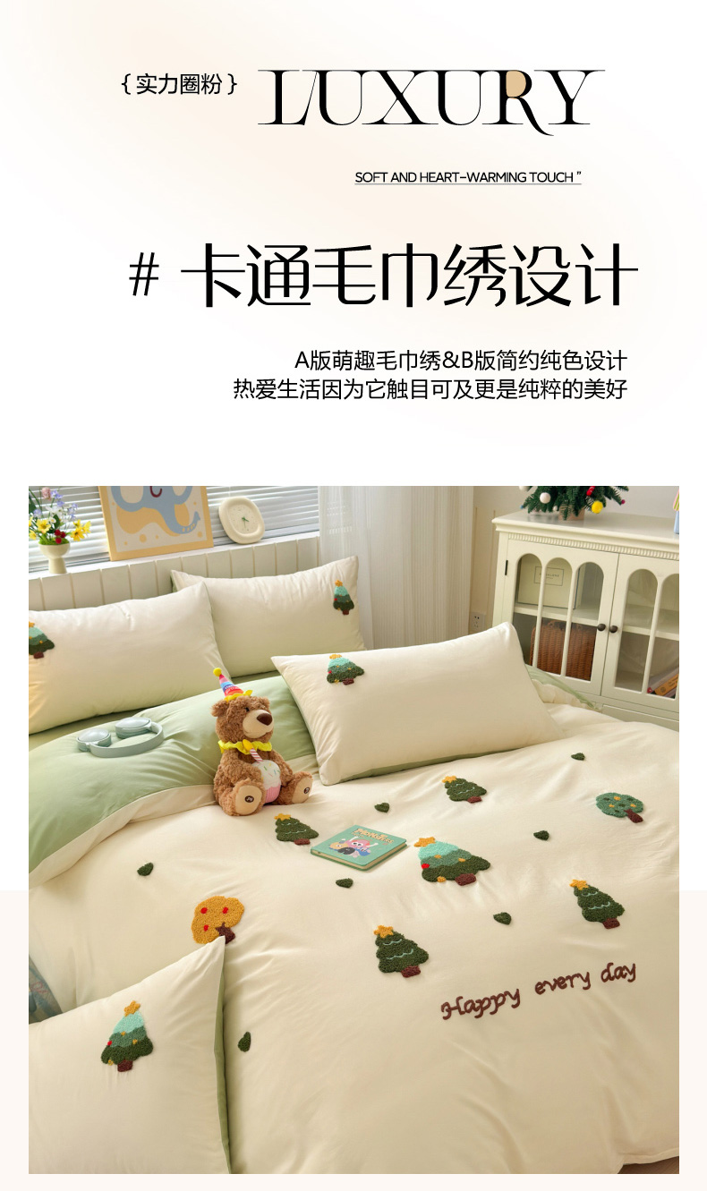 (总)如意朵 2026新款全棉加厚磨毛毛巾绣四件套(专版花型),好朋友,姜饼人,羞羞狗,幸运猫咪,小狐狸,可爱巴拉,快乐企鹅,好柿发生