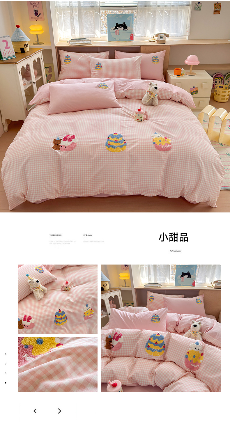 (总)如意朵 2026新款超柔高密全棉小清新绣花四件套(专版花型),喜乐萌狗,番茄萌喵,粉格萌喵,礼物狗狗,摩卡萌喵,甜点萌狗,甜睡小兔,幸运喵喵,招财萌喵