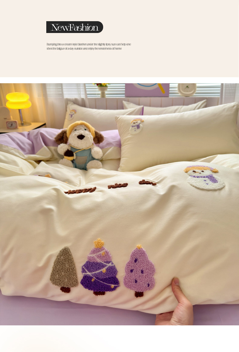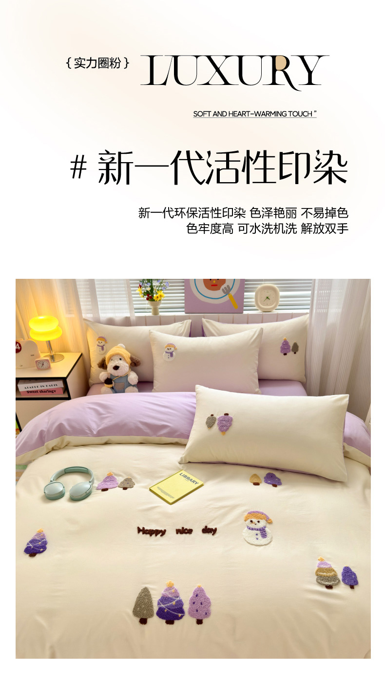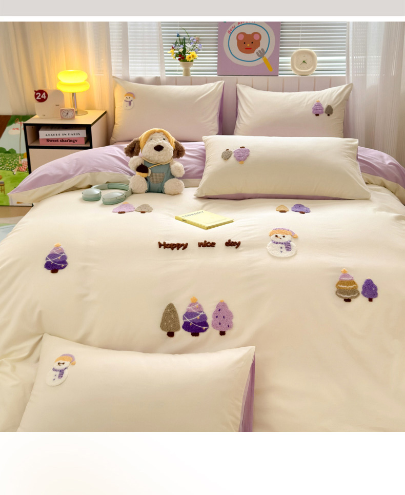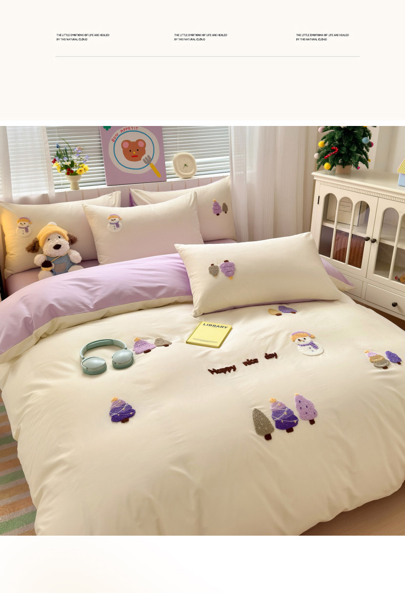 (总)如意朵 2026新款全棉加厚磨毛绣花四件套风格二(专版花型),梦幻森林紫,猫和树,甜心狗狗,狮来运转,圣诞心语,梦幻森林米,时尚猫咪,马到橙功,童话世界,追梦企鹅蓝,追梦企鹅米,快乐加马