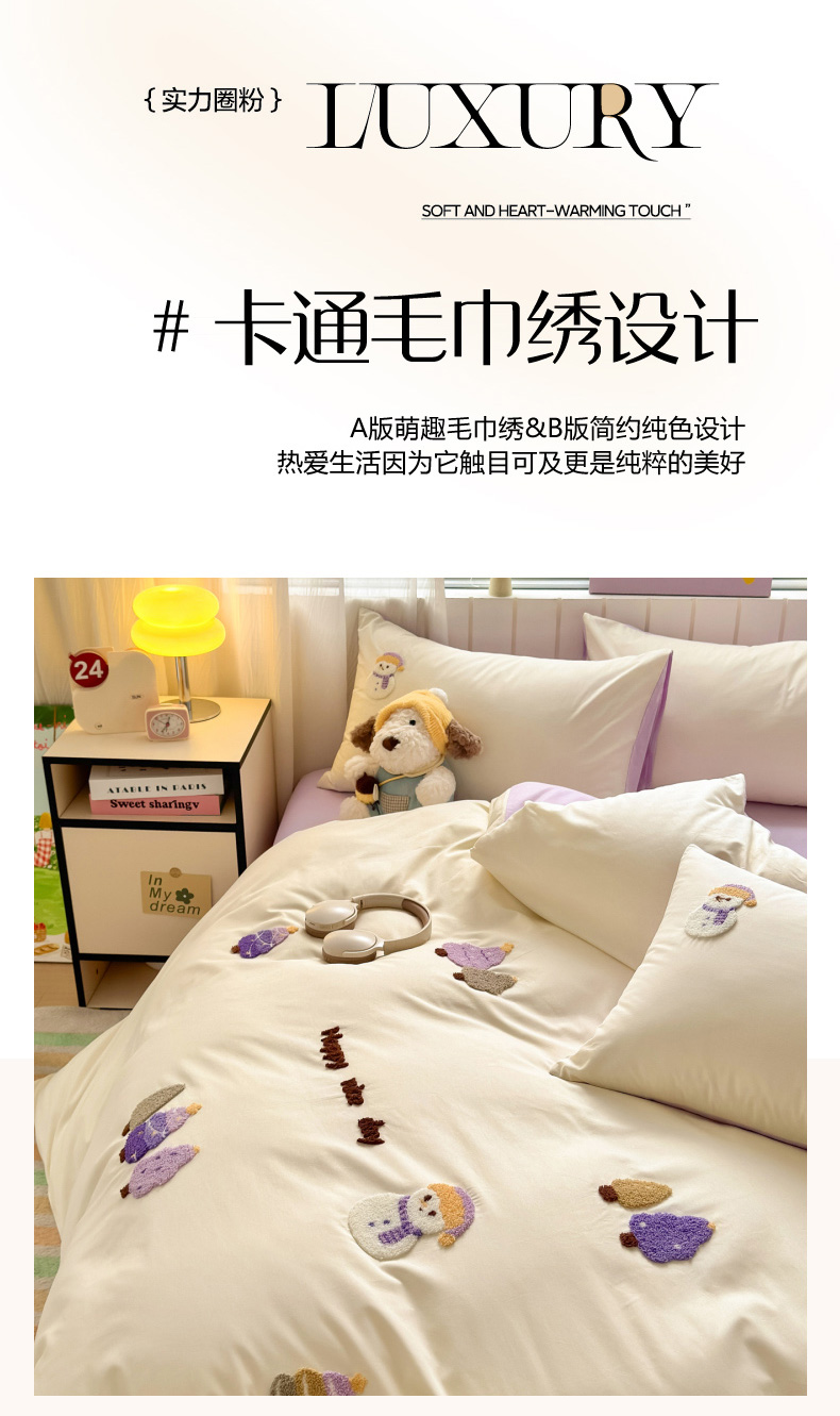 (总)如意朵 2026新款全棉加厚磨毛毛巾绣四件套(专版花型),好朋友,姜饼人,羞羞狗,幸运猫咪,小狐狸,可爱巴拉,快乐企鹅,好柿发生