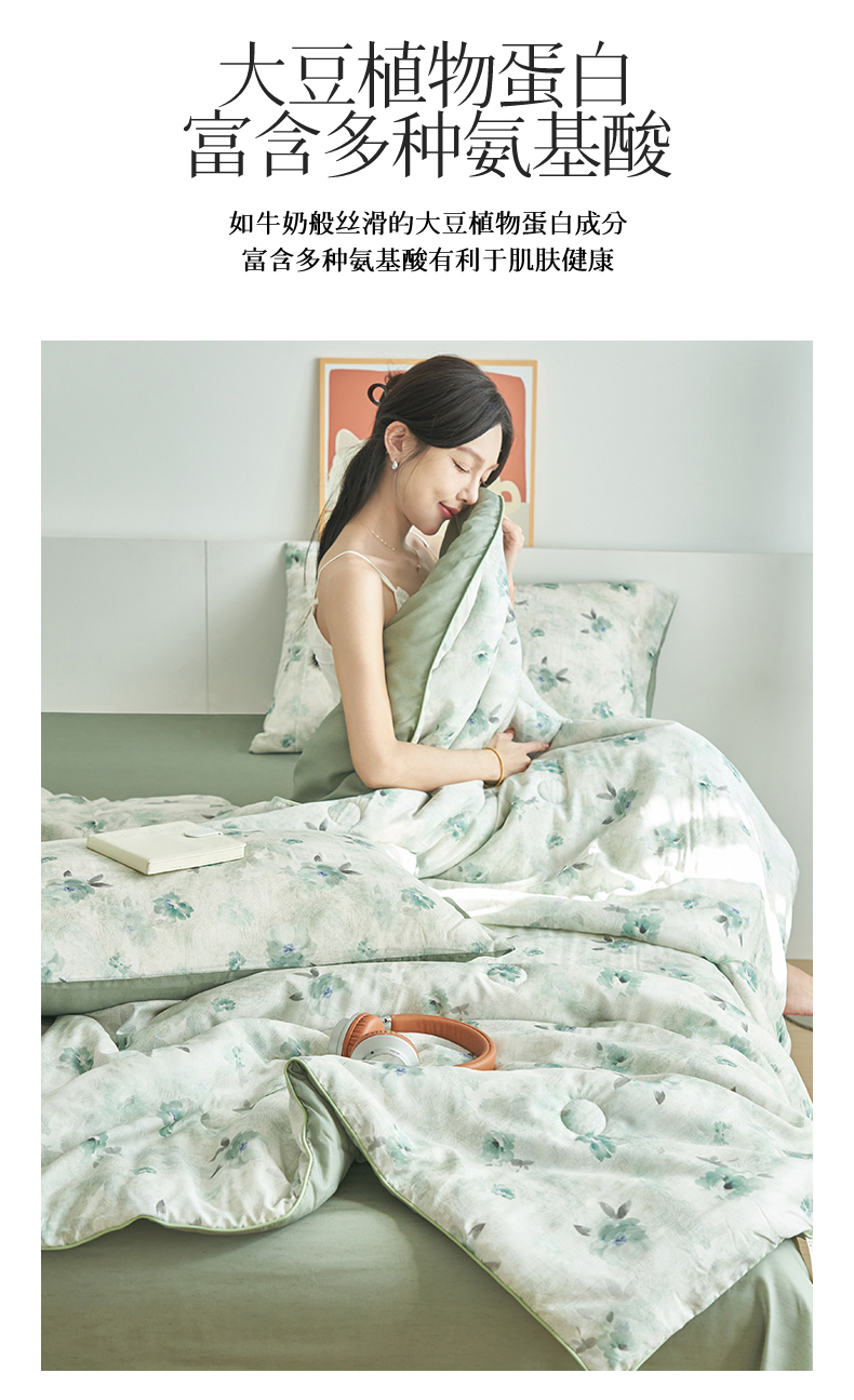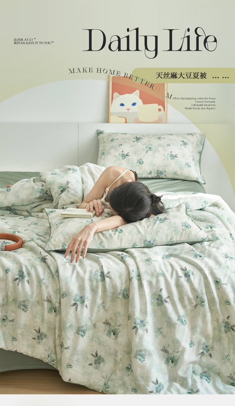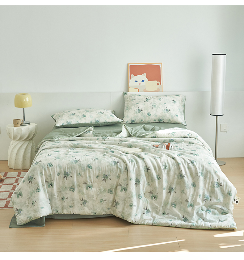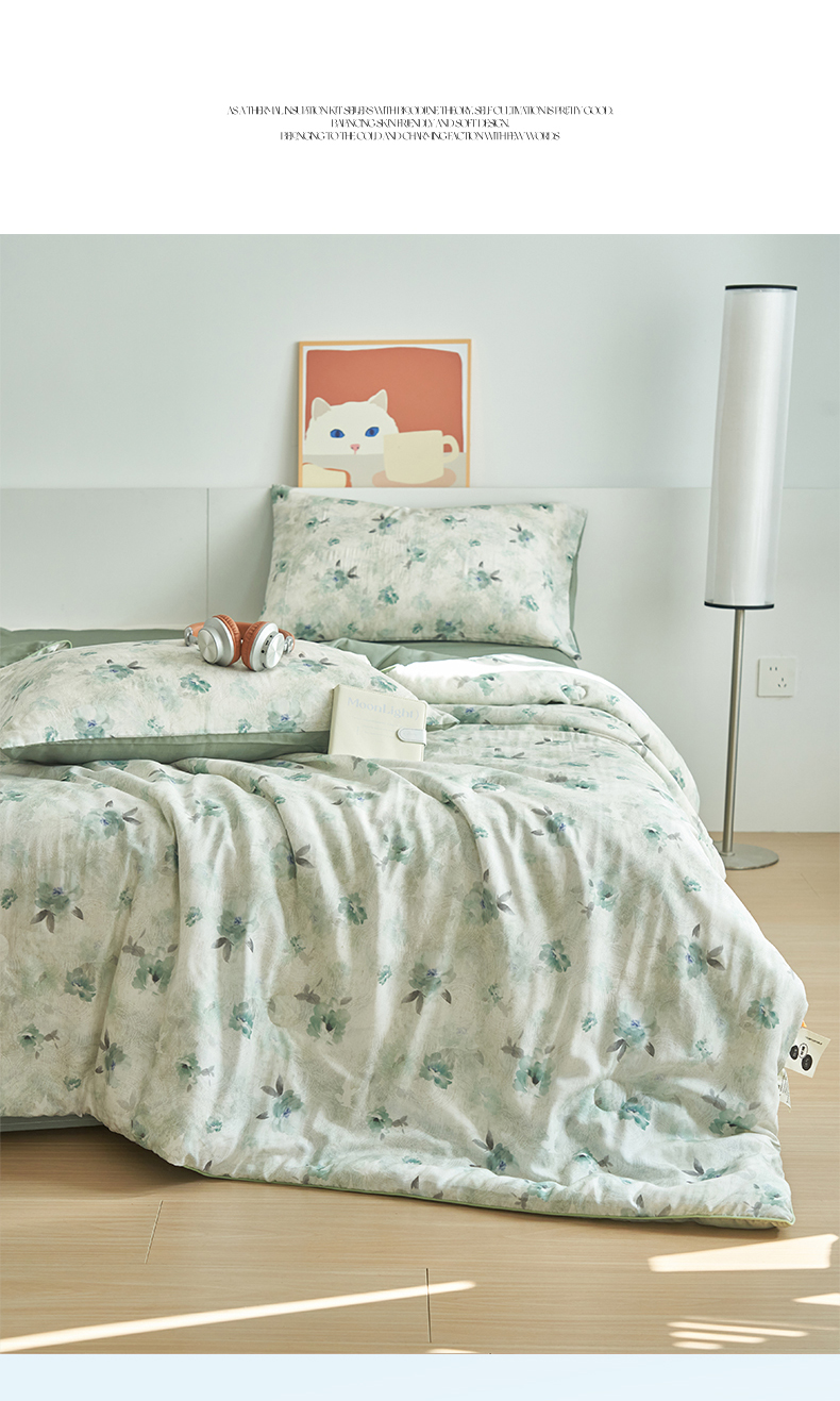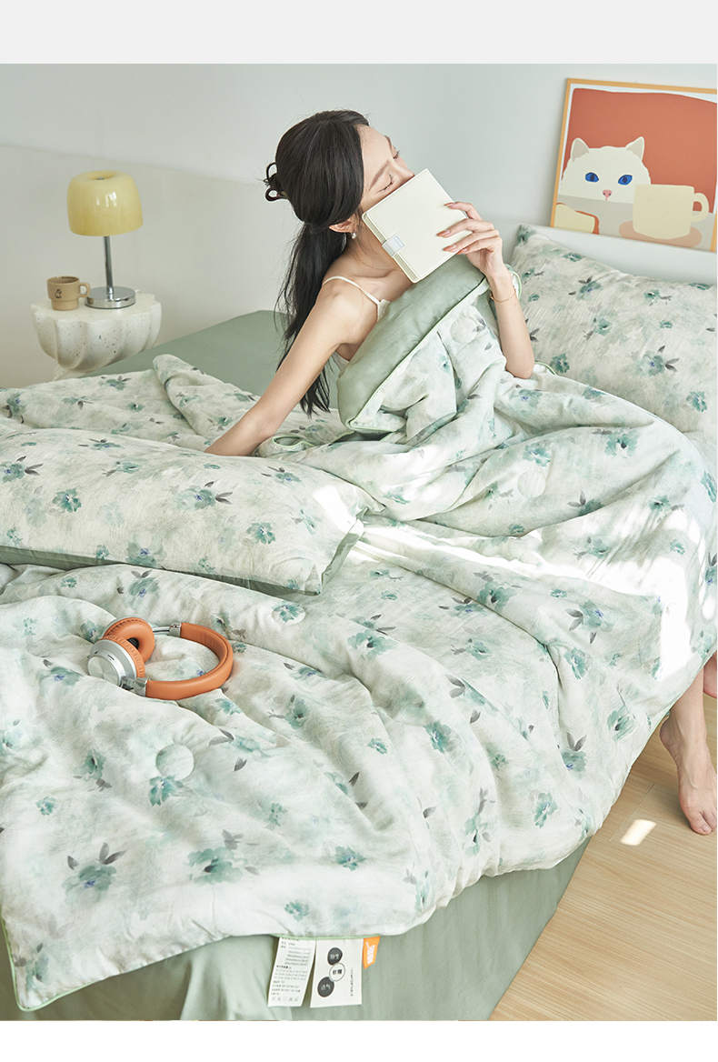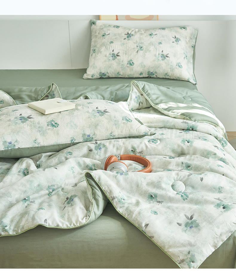 (总)恬思语家纺 2026春夏新品莱赛尔天丝印花蚕丝夏被夏凉被空调被,绮梦-玉,幸福里-绿