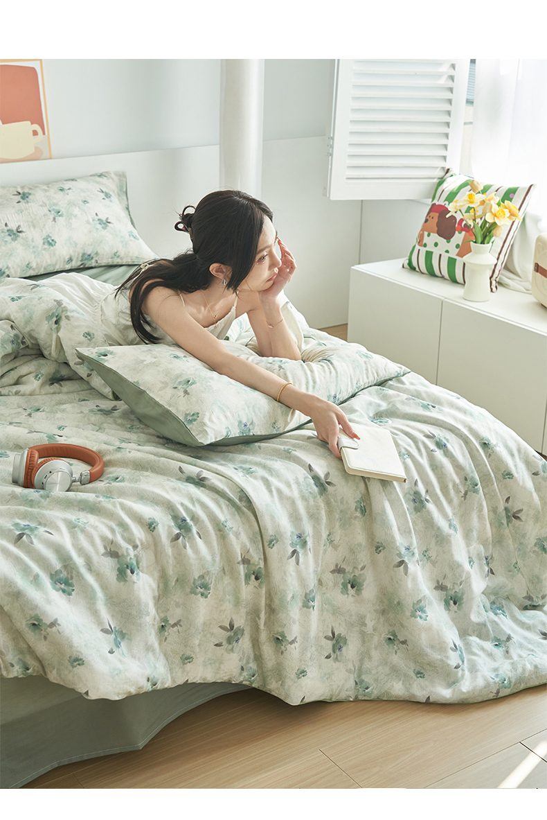 (总)恬思语家纺 2026春夏全棉双层纱棉花夏被空调被夏凉被四件套贝壳边系列,Ш櫻漫语,彩星芒,春晓-粉,春晓-绿,粉粉猫,花从兔-紫,咖啡狗,蓝汐-灰,南瓜派对,浅花町,阳光小马,云絮花-蓝,组合图仅供参考不可下单