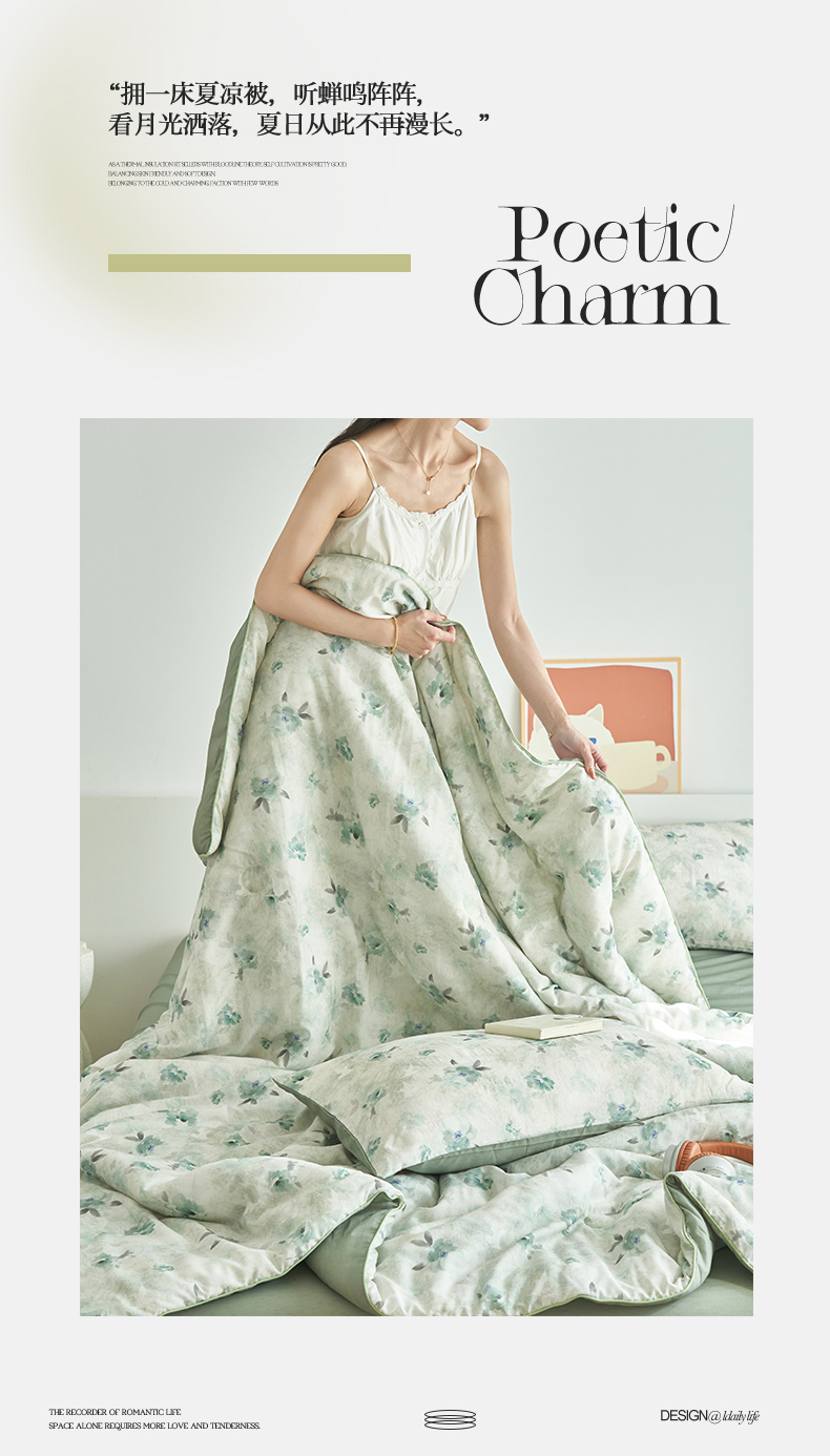 • 91家纺网 家纺一手货源 找家纺 (总)恬思语家纺 2026春夏新品莱赛尔天丝印花蚕丝夏被夏凉被空调被,绮梦-玉,幸福里-绿