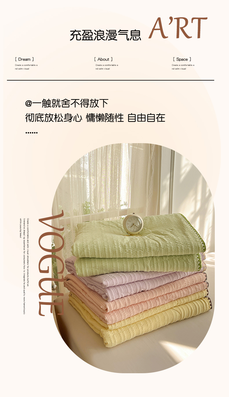 (总)一比一家纺 2026新款泡泡纱三角针夏被四件套--纯色系列,薄荷绿,抹茶绿,奶油粉,奶油黄,杏仁白,燕麦咖,芋泥紫,组合图