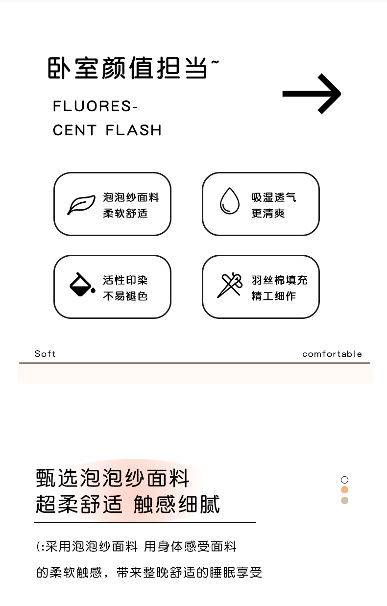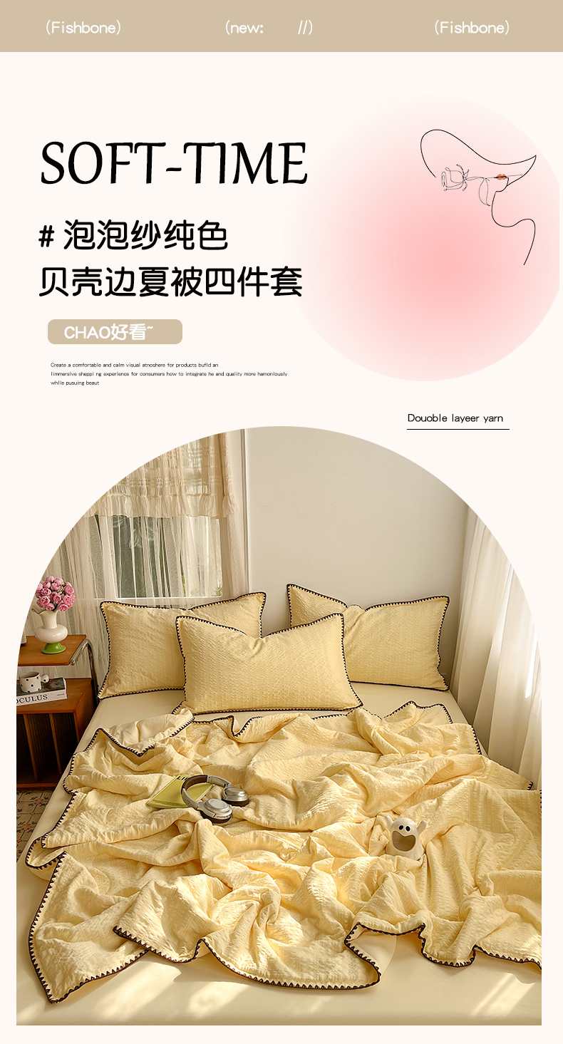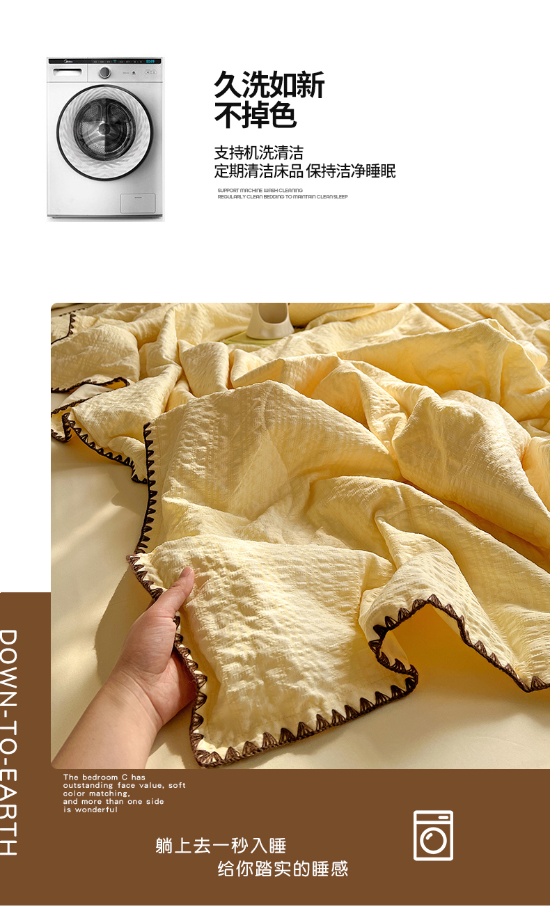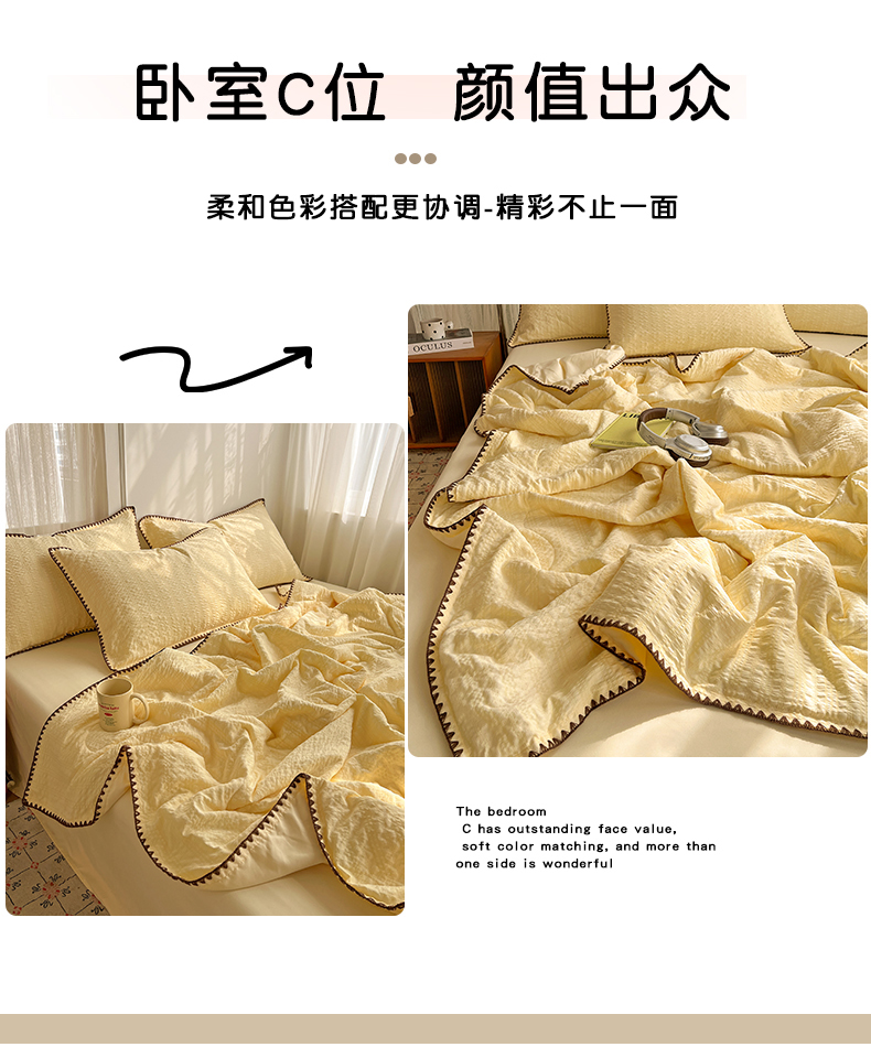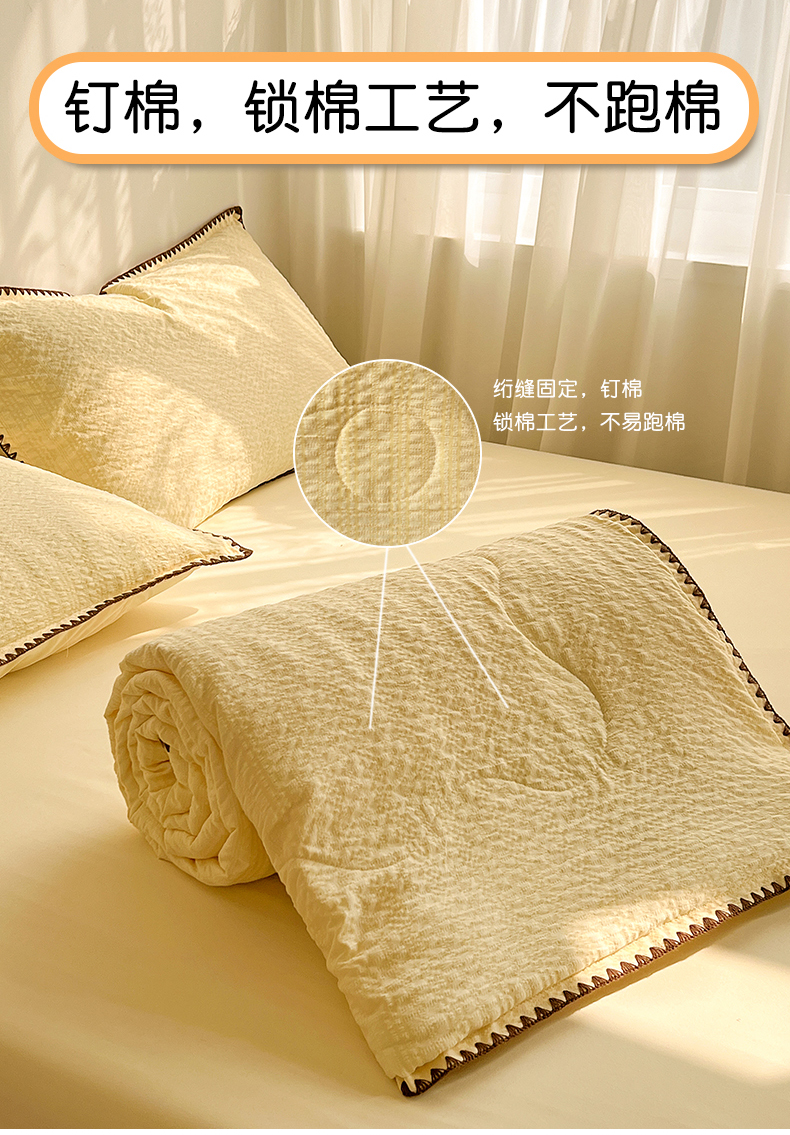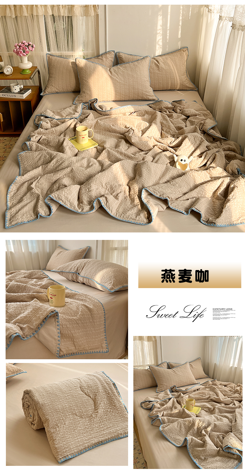 一比一家纺 2026新款泡泡纱三角针夏被四件套--纯色系列 组合图