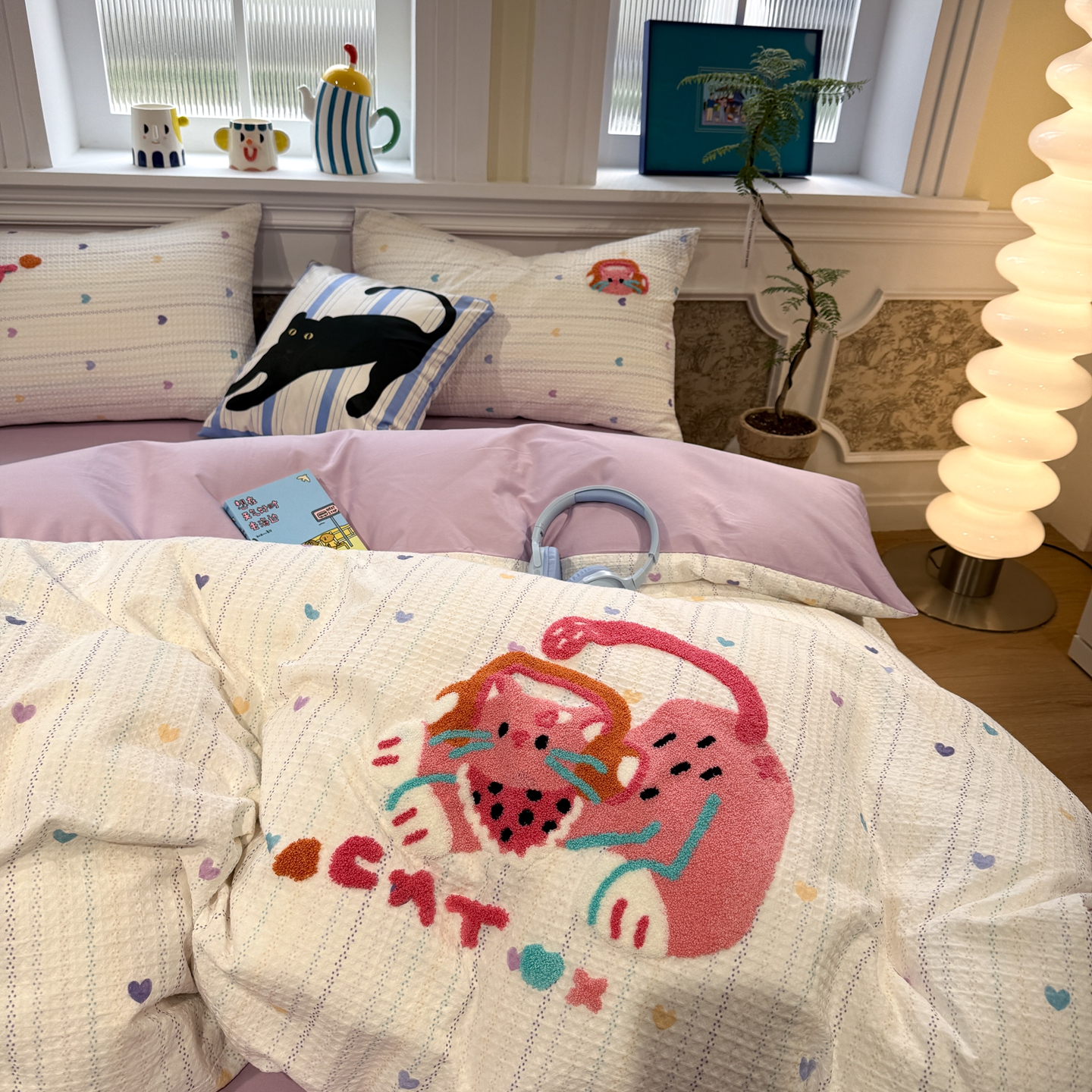 当前位置: 91家纺网 > 商品网购 > 床品套件 > 四件套 > 毛巾绣四件套 > 珺柔家纺 2026新款卡通华夫格毛巾绣四件套 下午茶小狗