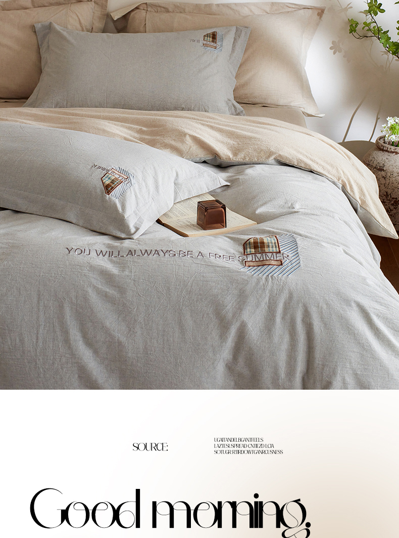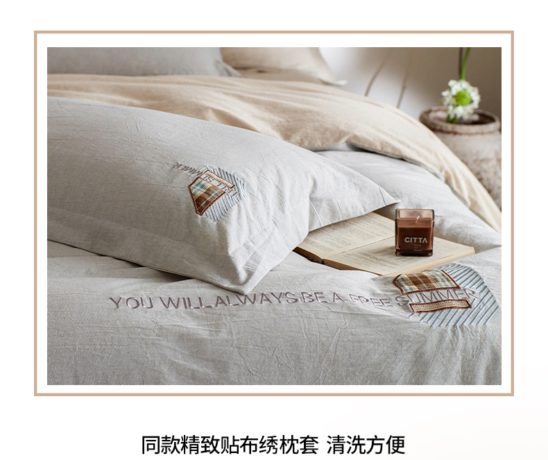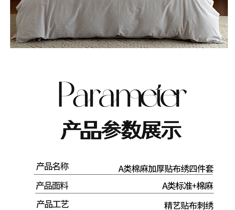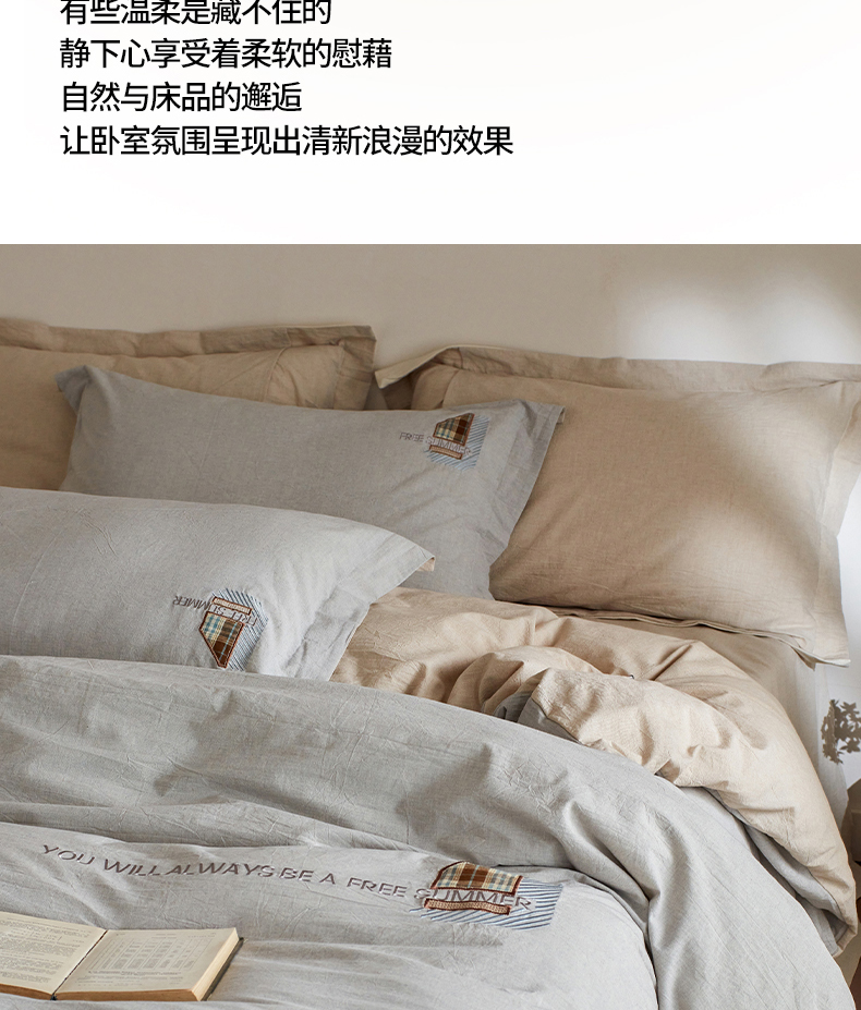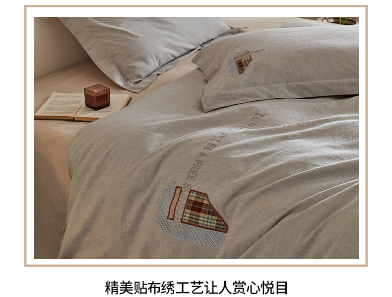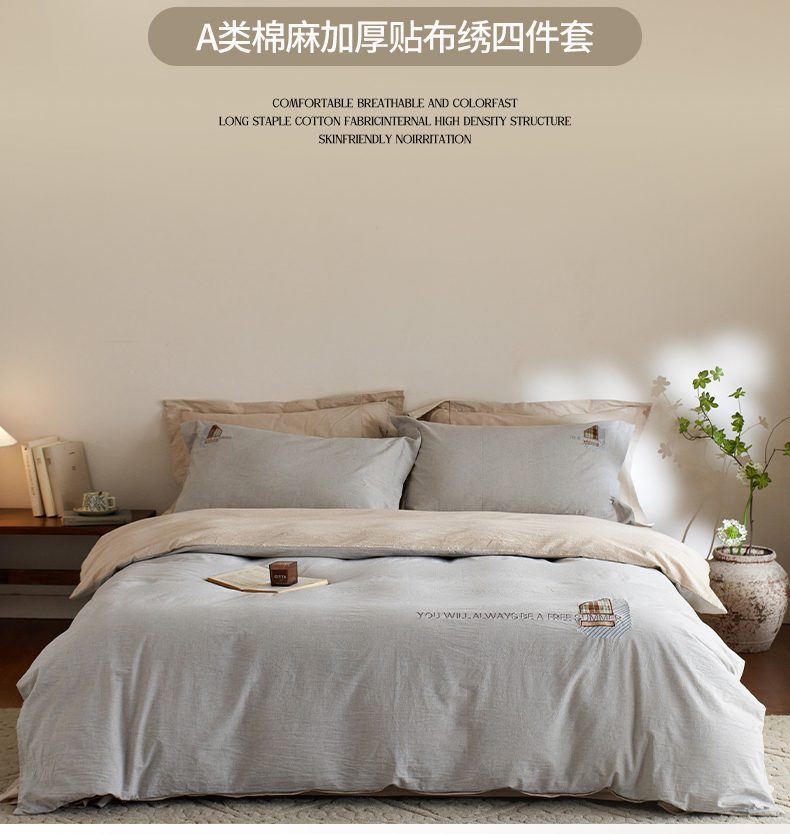 当前位置: 91家纺网 > 商品网购 > 床品套件 > 四件套 > 其它四件套 > 艾莱家纺 2026春夏新款A类棉麻贴布刺绣加厚四件套-杰森 杰森-浅灰+卡其