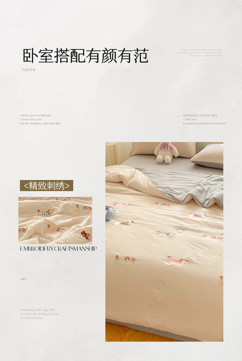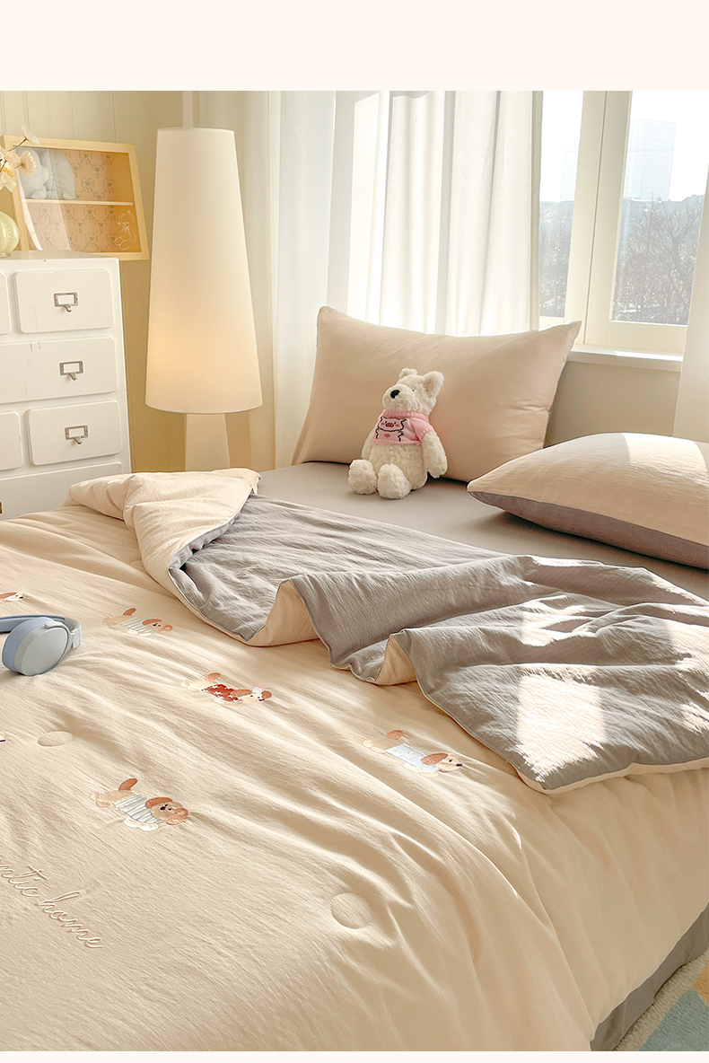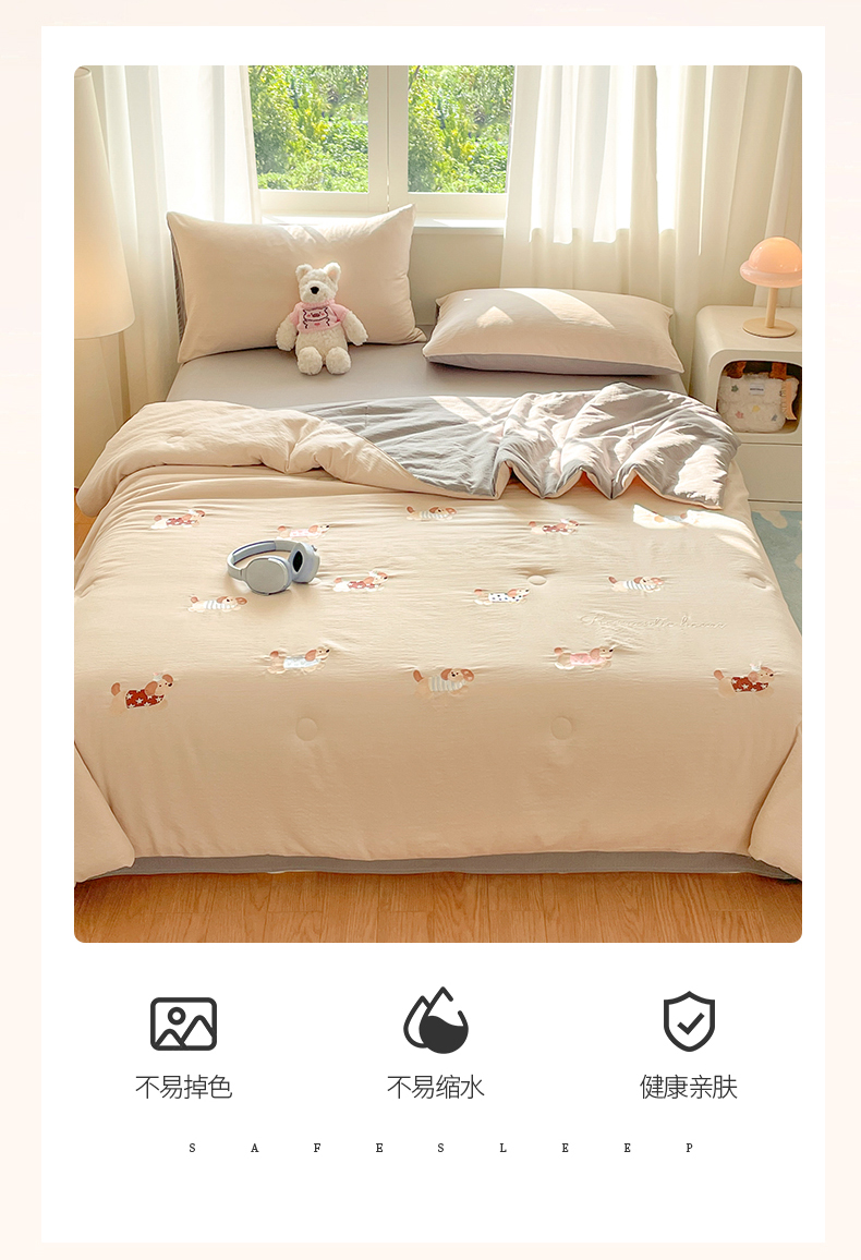 (总)盛秋家纺 2026新款皱皱纱散点绣夏被-妮可,花朵奶油粉,花朵奶昔白,花朵清新绿,腊肠狗山灰,腊肠狗梧桐杏,小狗奶昔白,小狗天空蓝,小马奶黄,小马梧桐杏,小熊米驼,小熊奶昔白,小熊梧桐杏