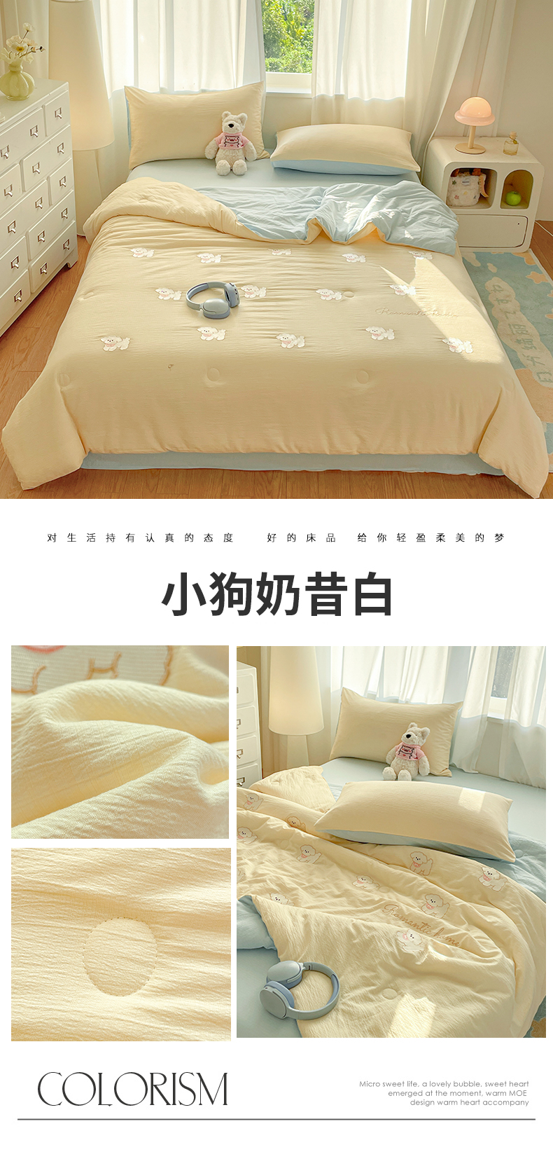 • 91家纺网 家纺一手货源 找家纺 (总)盛秋家纺 2026新款皱皱纱散点绣夏被-妮可,花朵奶油粉,花朵奶昔白,花朵清新绿,腊肠狗山灰,腊肠狗梧桐杏,小狗奶昔白,小狗天空蓝,小马奶黄,小马梧桐杏,小熊米驼,小熊奶昔白,小熊梧桐杏