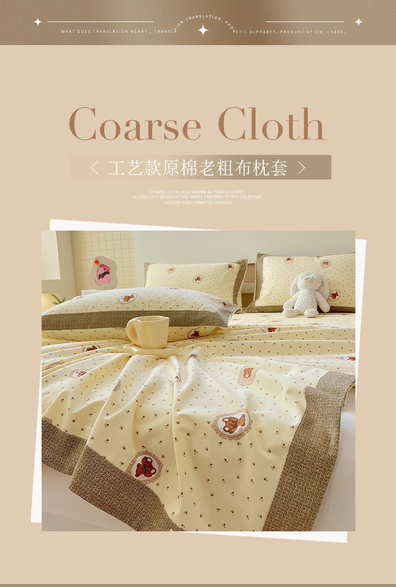 商品名称:春皖家纺 2026新款全棉老粗布工艺款单枕套枕套单件 可爱熊