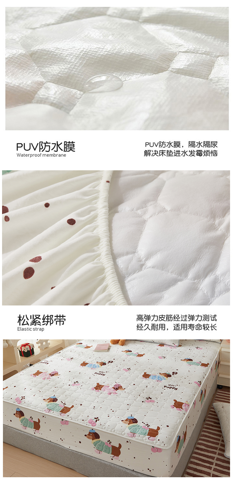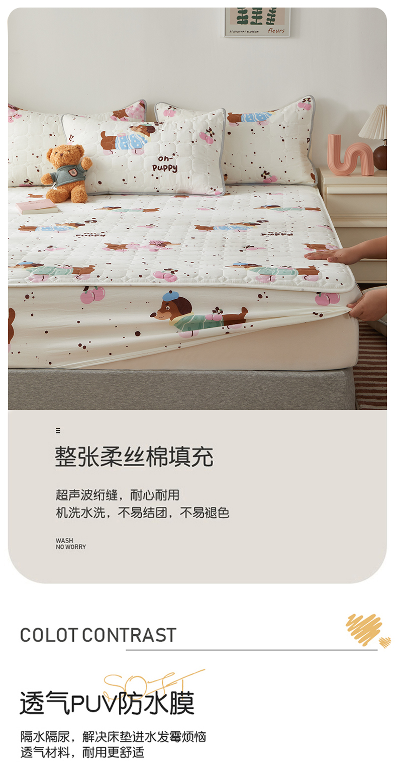 (总)舒居家纺 2025新款亲肤夹棉卡通 防水床笠床垫席梦思床套床罩(不宜机洗,建议手洗)),奥利奥小熊,靠谱小狗,慢生活,奶猫,丝带飞飞兔,甜甜黄油熊,小波点,小猫逃离季,小猫线球,小甜派,心跳回声,园镜兔