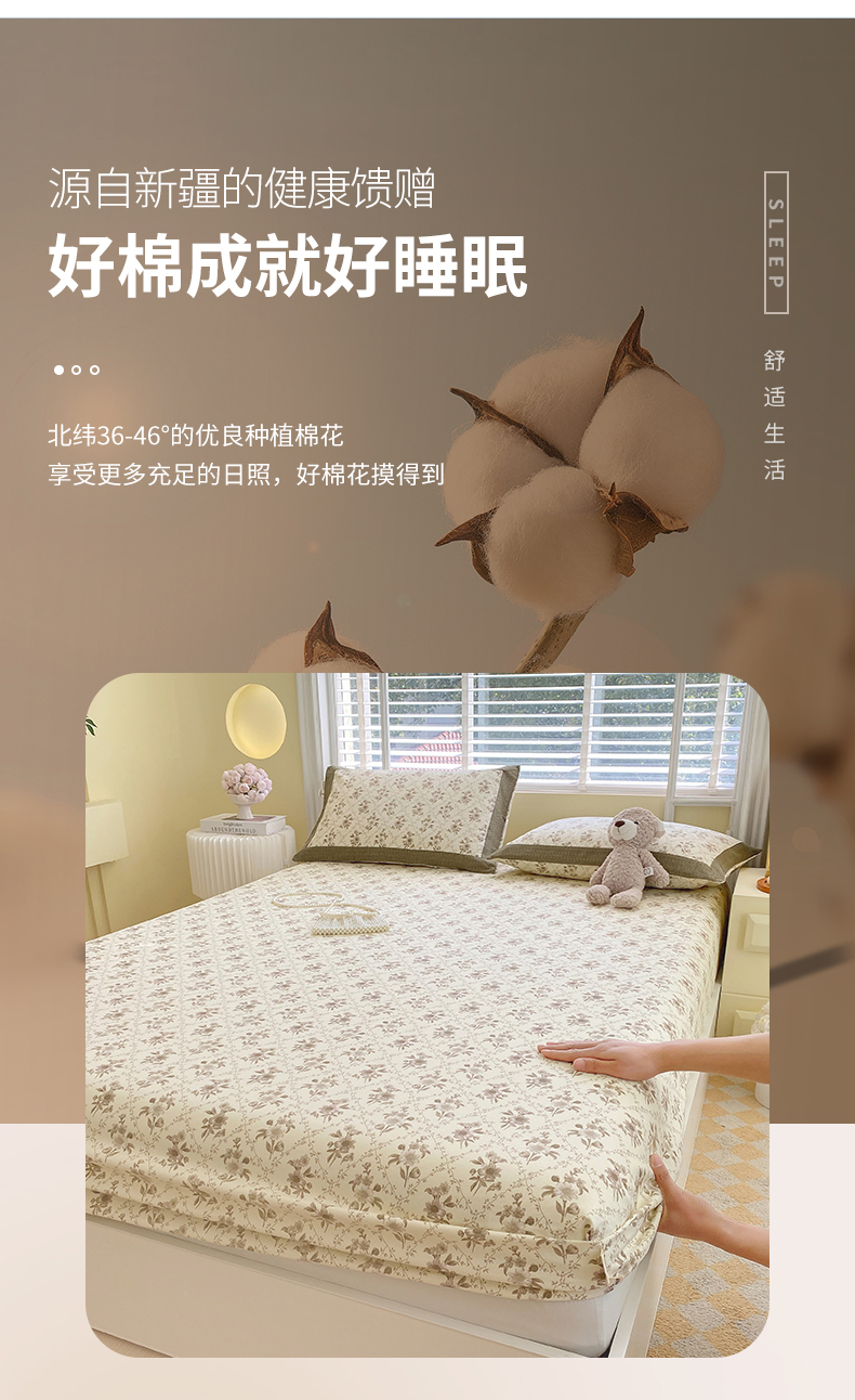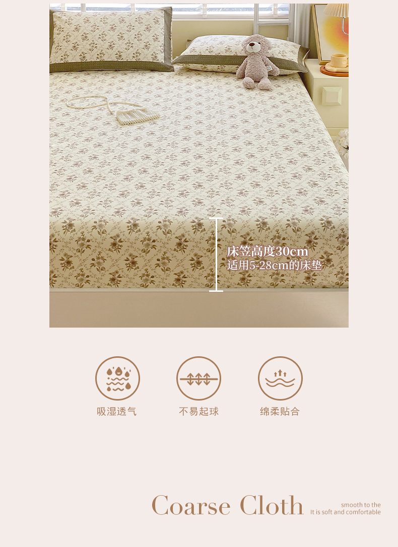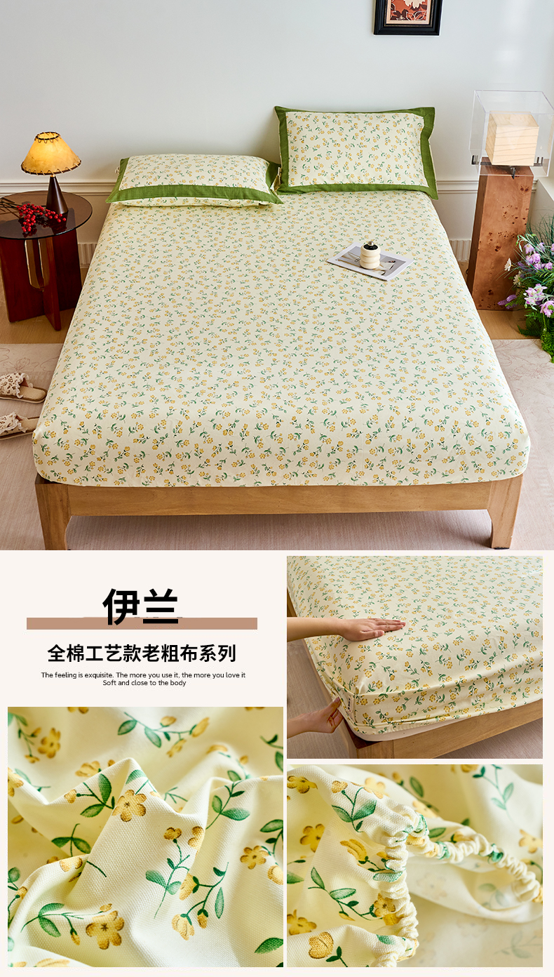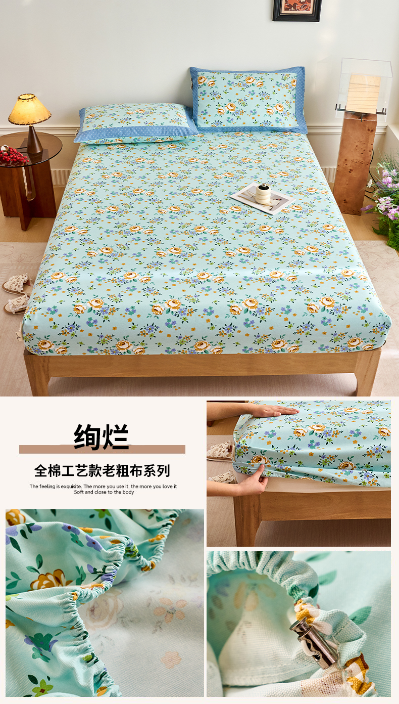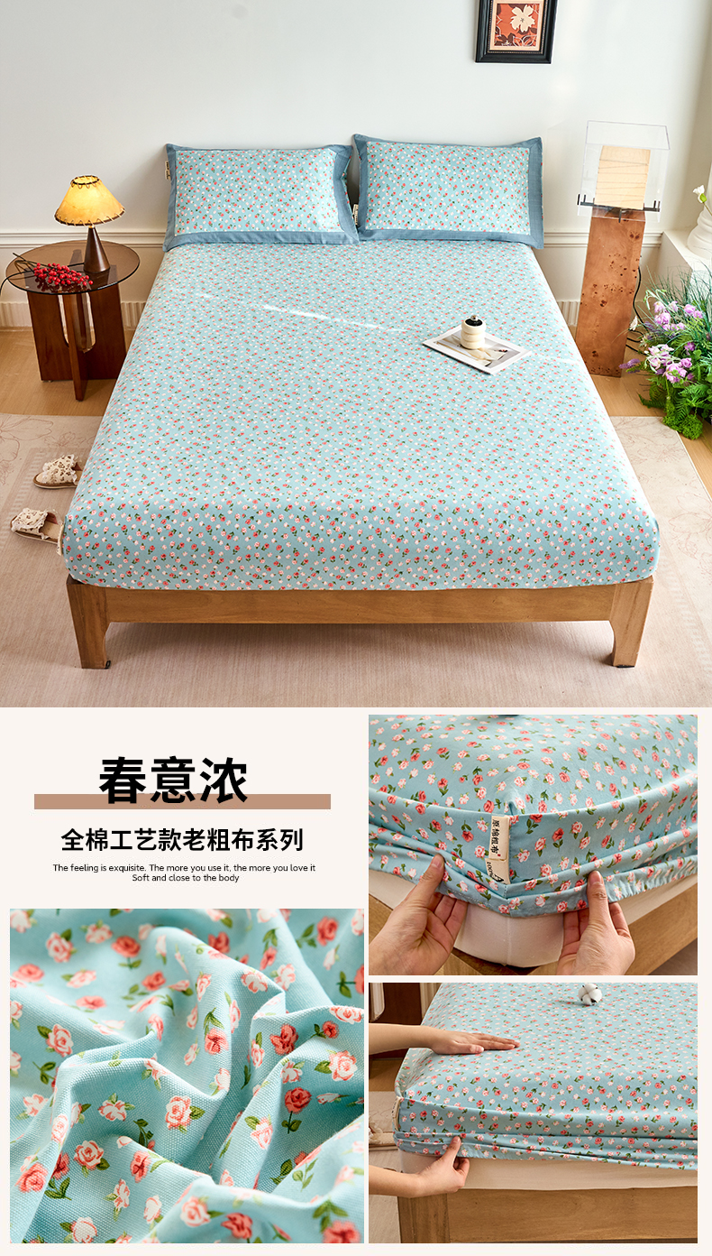 春皖家纺 2026新款全棉老粗布工艺款单床笠床笠单件 枝丫