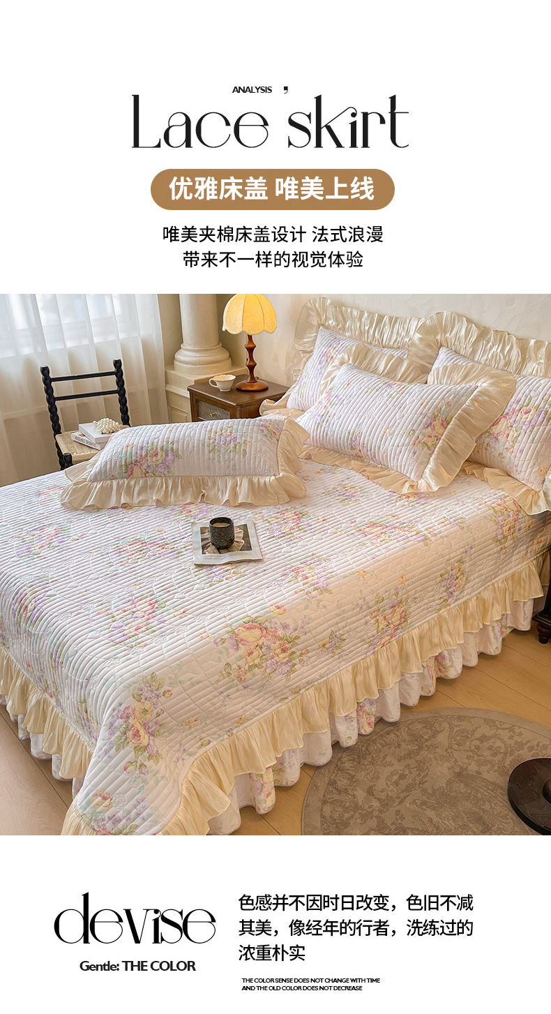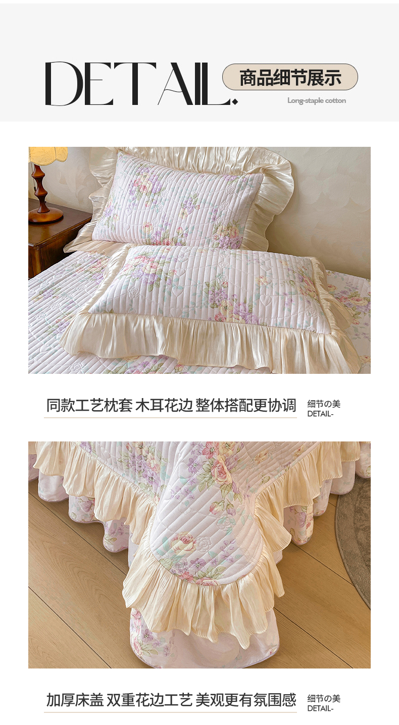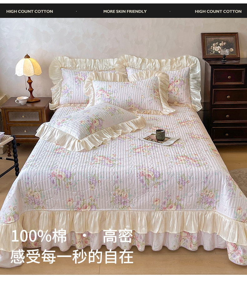 当前位置: 91家纺网 > 商品网购 > 床品套件 > 三件套 > 宜凡家纺 2026新款全棉印花公主风夹棉床盖三件套 假日