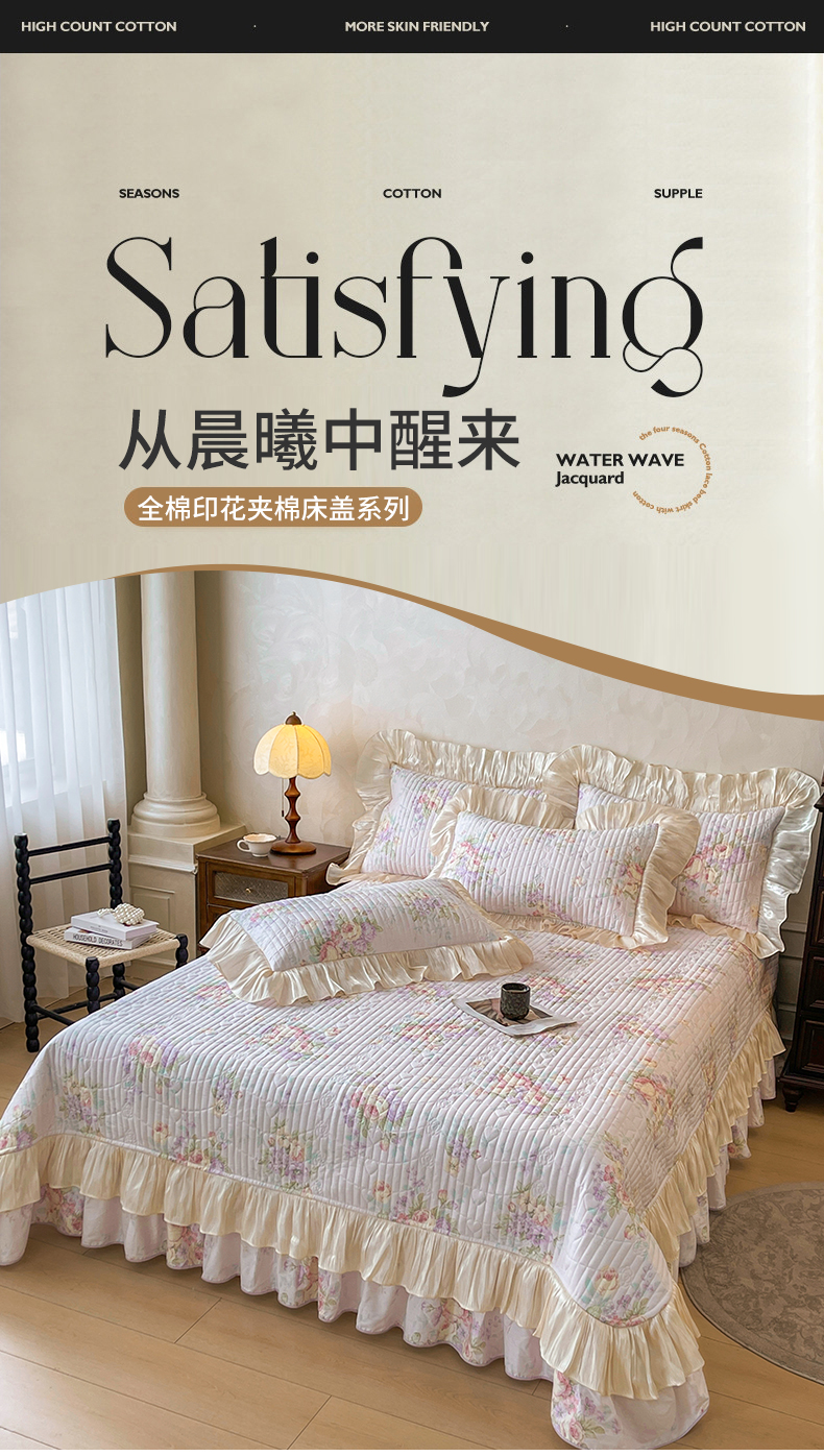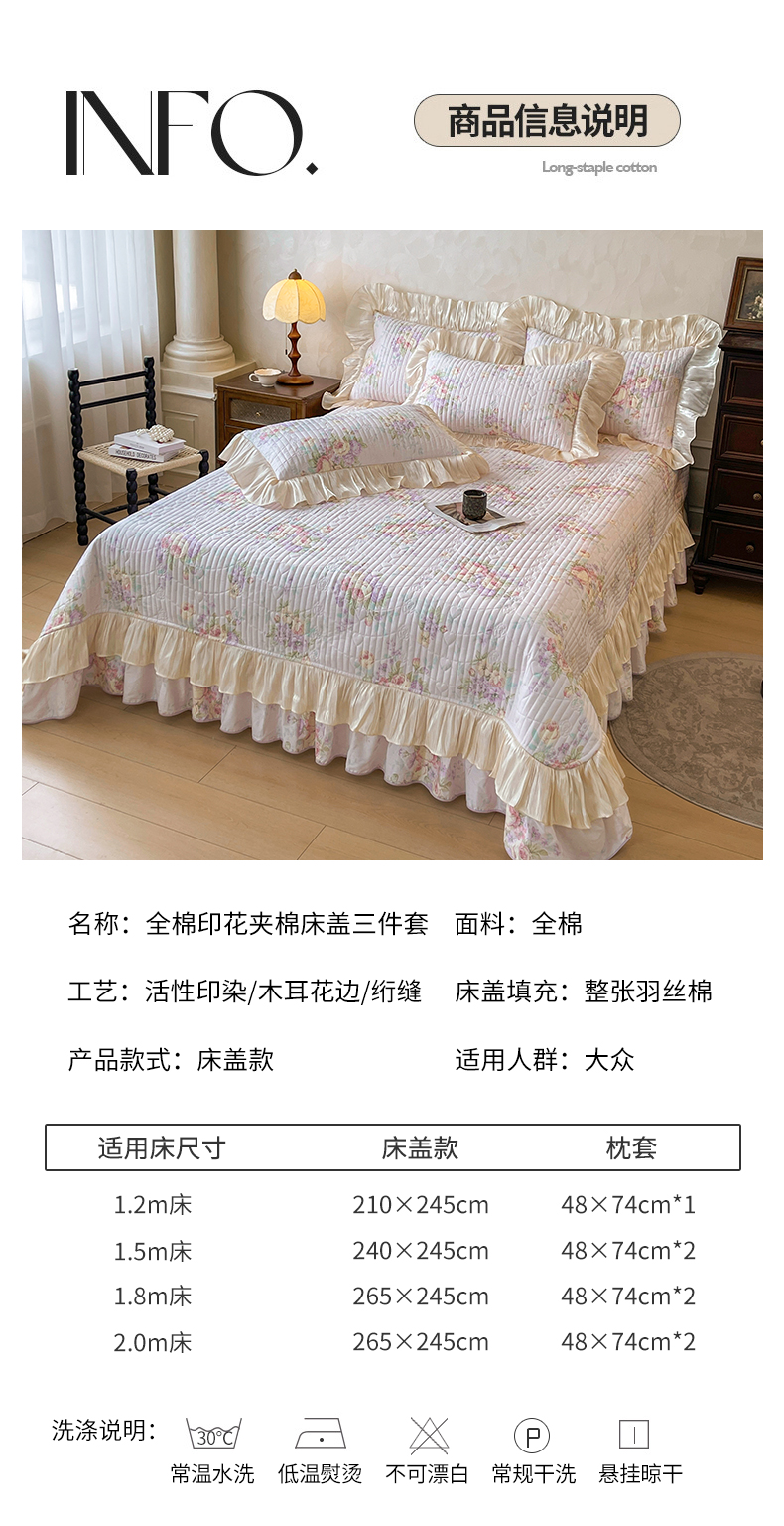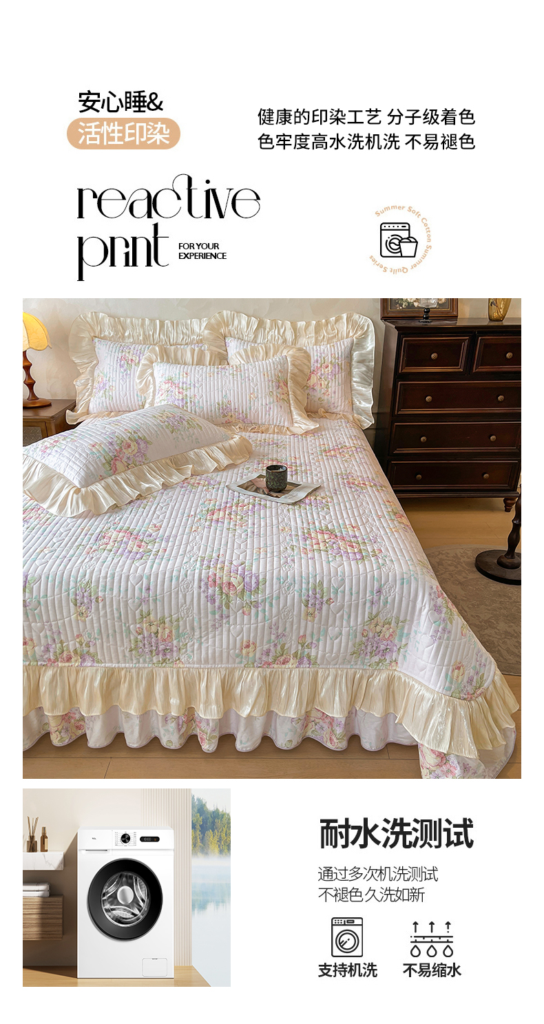 当前位置: 91家纺网 > 商品网购 > 床品套件 > 三件套 > 宜凡家纺 2026新款全棉印花公主风夹棉床盖三件套 假日