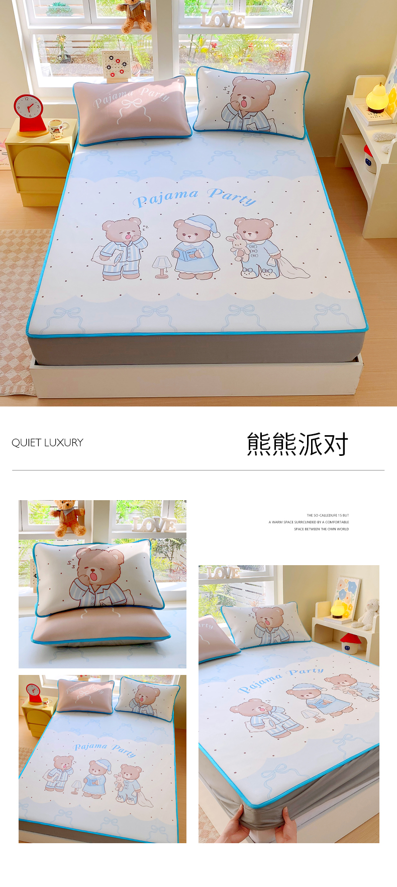 商品名称:莱米家纺 2026新款大版小冰皮床笠床席 熊熊派对床席