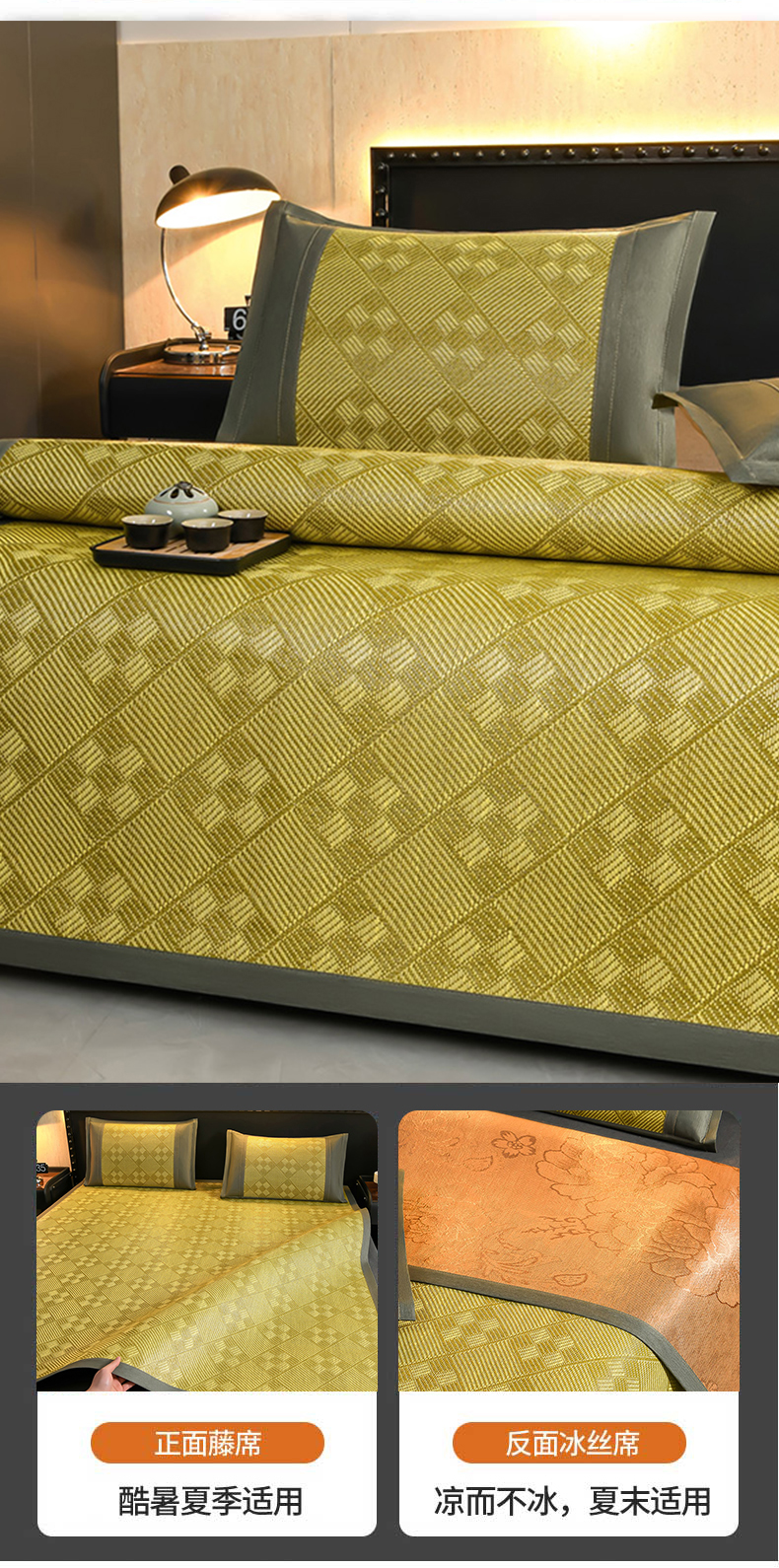 当前位置: 91家纺网 > 商品网购 > 床上用品 > 凉席 > 藤席 > 苏迪网销供货 2026新款九宫格双面藤席全包凉席反面冰丝席子 九宫格藤席-绿