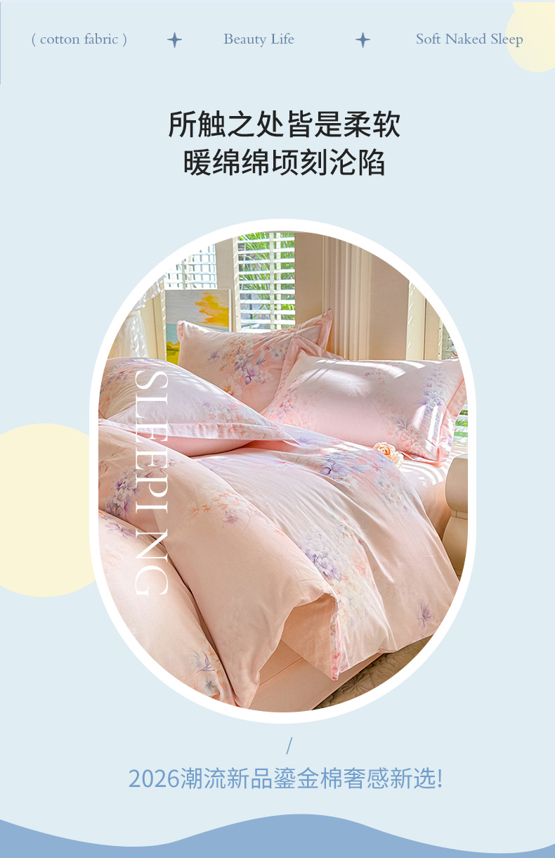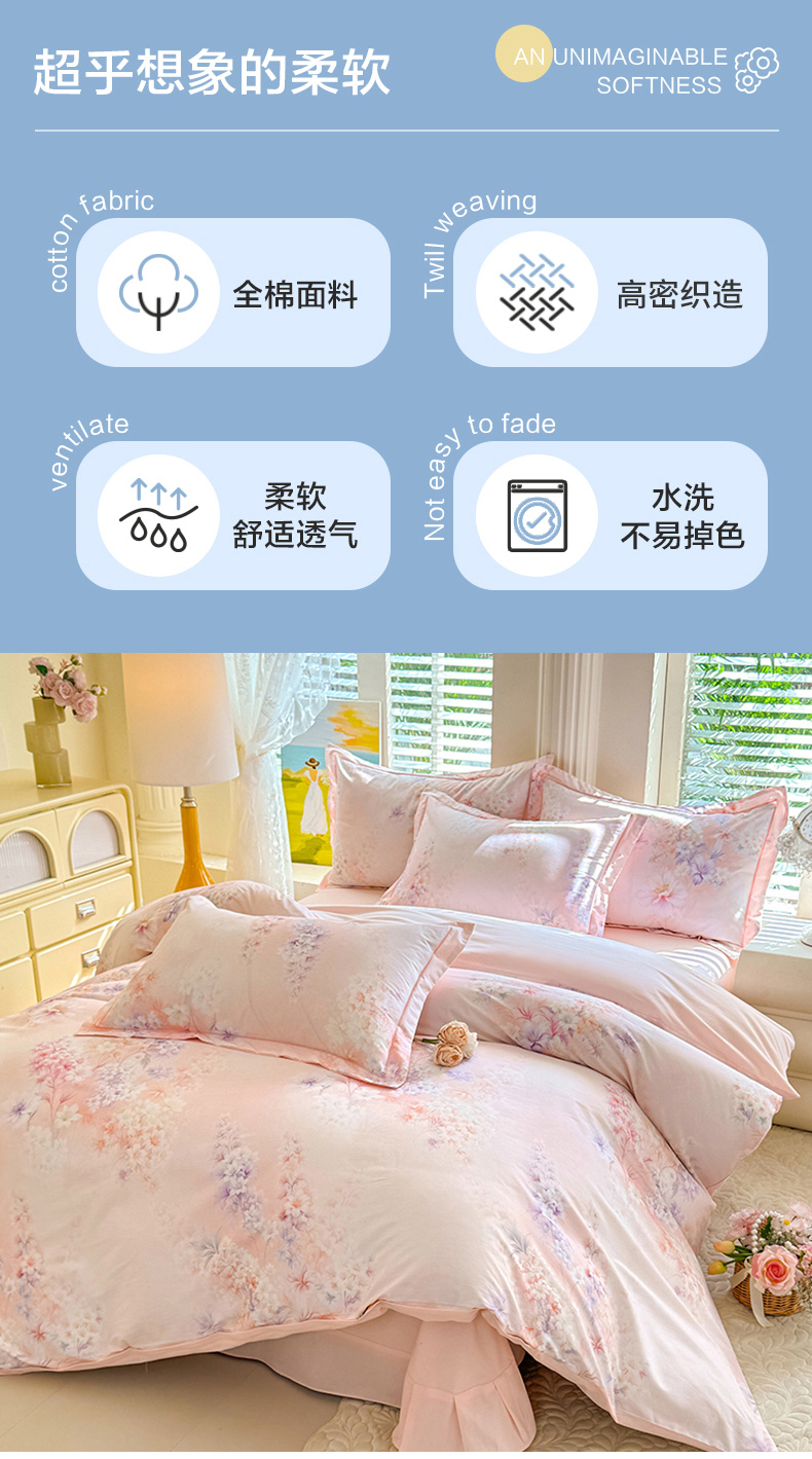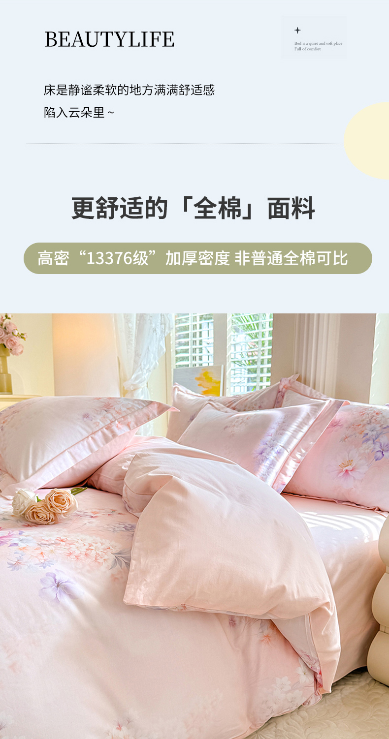 当前位置: 91家纺网 > 商品网购 > 床品套件 > 四件套 > 全棉普通四件套 > 巧玲珑 2026新款全棉纯棉13376数码印花四件套 微风呢喃-粉