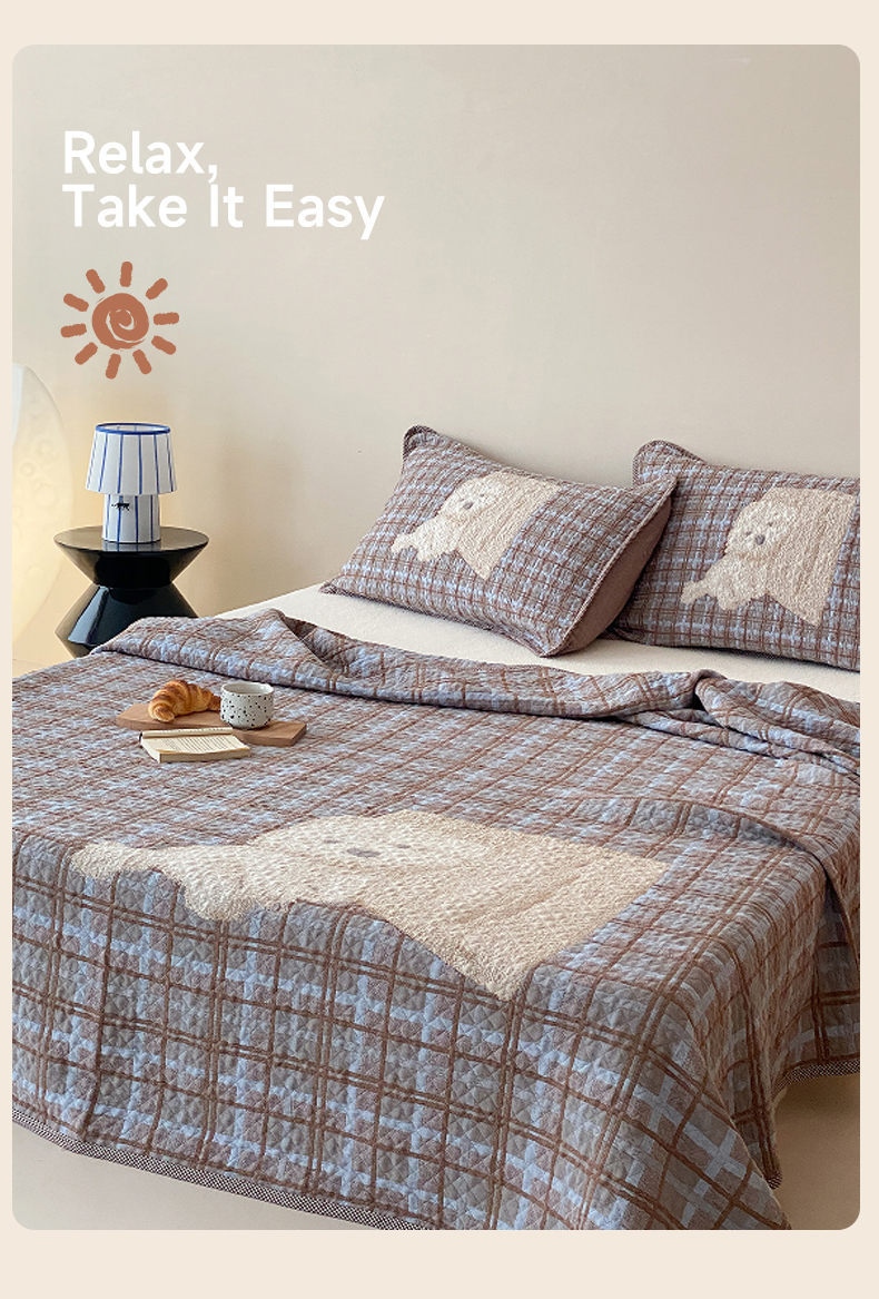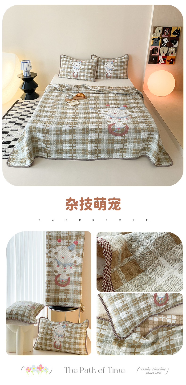 (总)麻依 2026新款安心棉床盖三件全棉四层纱布床单系列,点点星-彩色,点点星-粉色,点点星-绿色,点点星-浅咖,方格-彩色,方格-咖色,卡通小猫-淡紫,卡通小猫-亮黄,卡通小猫-浅粉,卡通小猫-水蓝,小花-粉色,小花-咖色,组合图仅展示