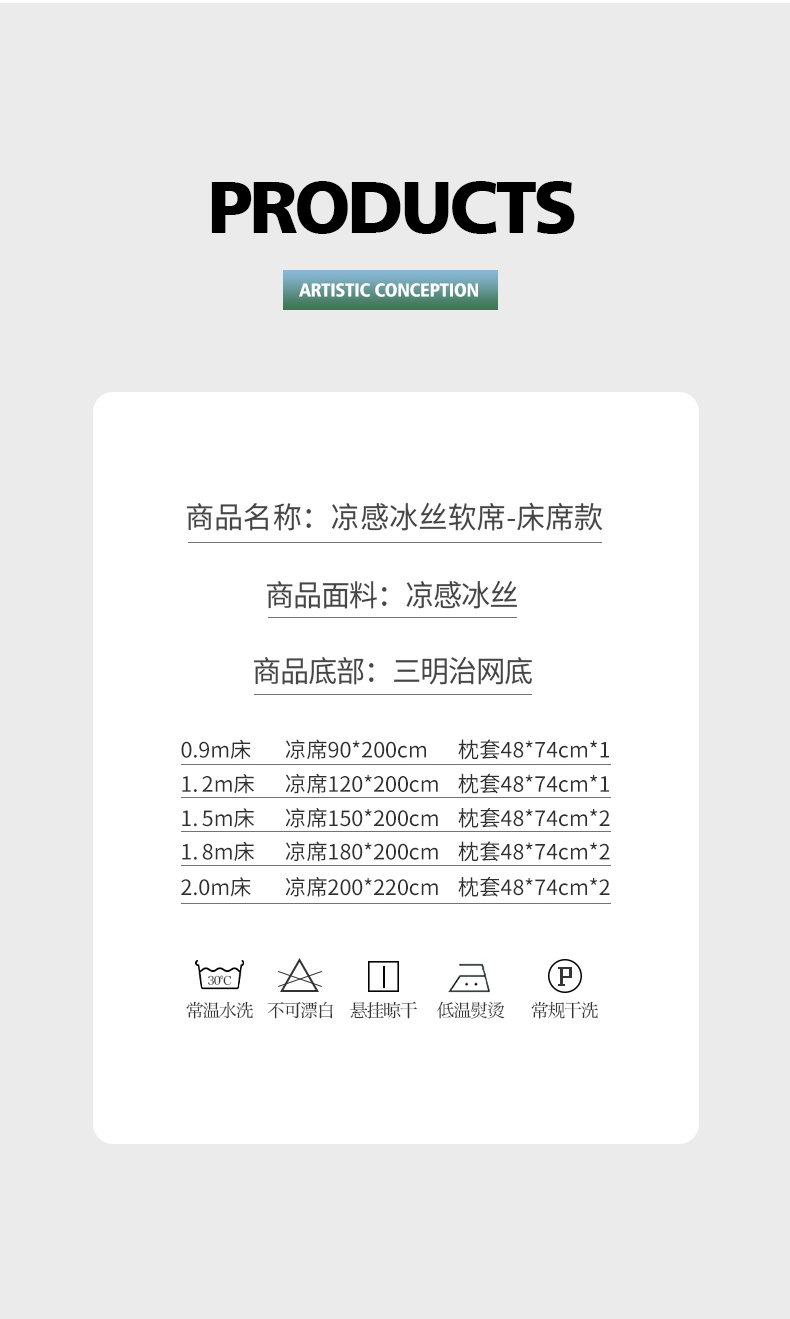 90x200cm凉席+枕套一只