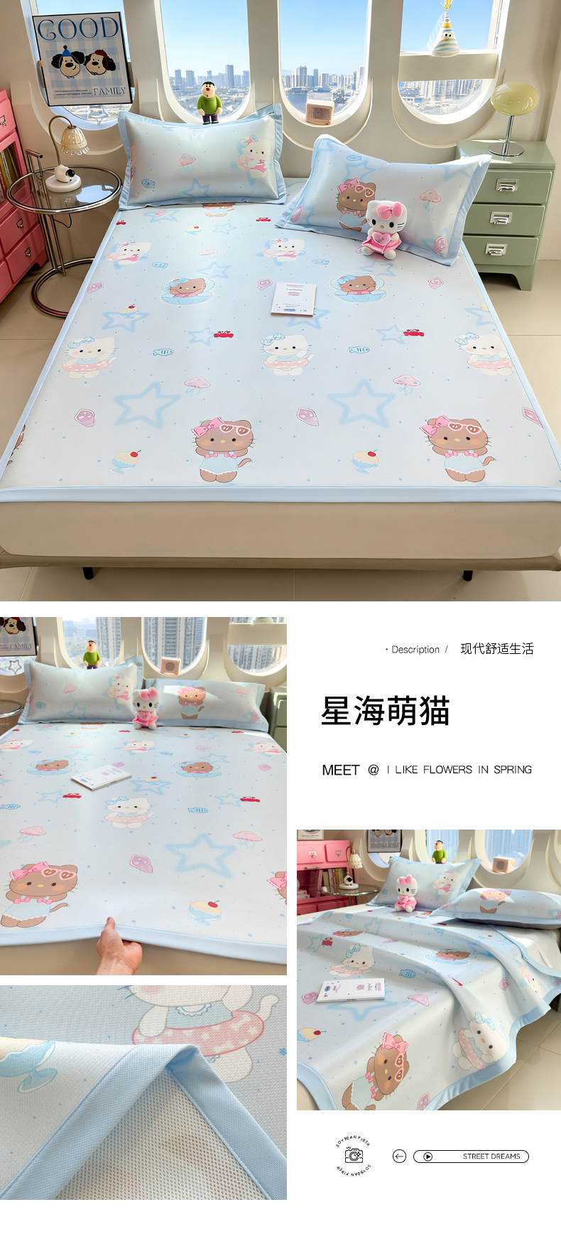 (总)丝羽坊 2026新款小版印花碳光冰丝凉席床笠款,星梦喵屋,蓝花熊语,小甜心,云漫花絮,兔宝,星光灿烂,彩色心愿,春日猫记,蛋糕猫,黑蝴蝶,花甜猫,绿叶,猫叙花间,萌宠甜心,小犬时光,幸运企鹅,叶语