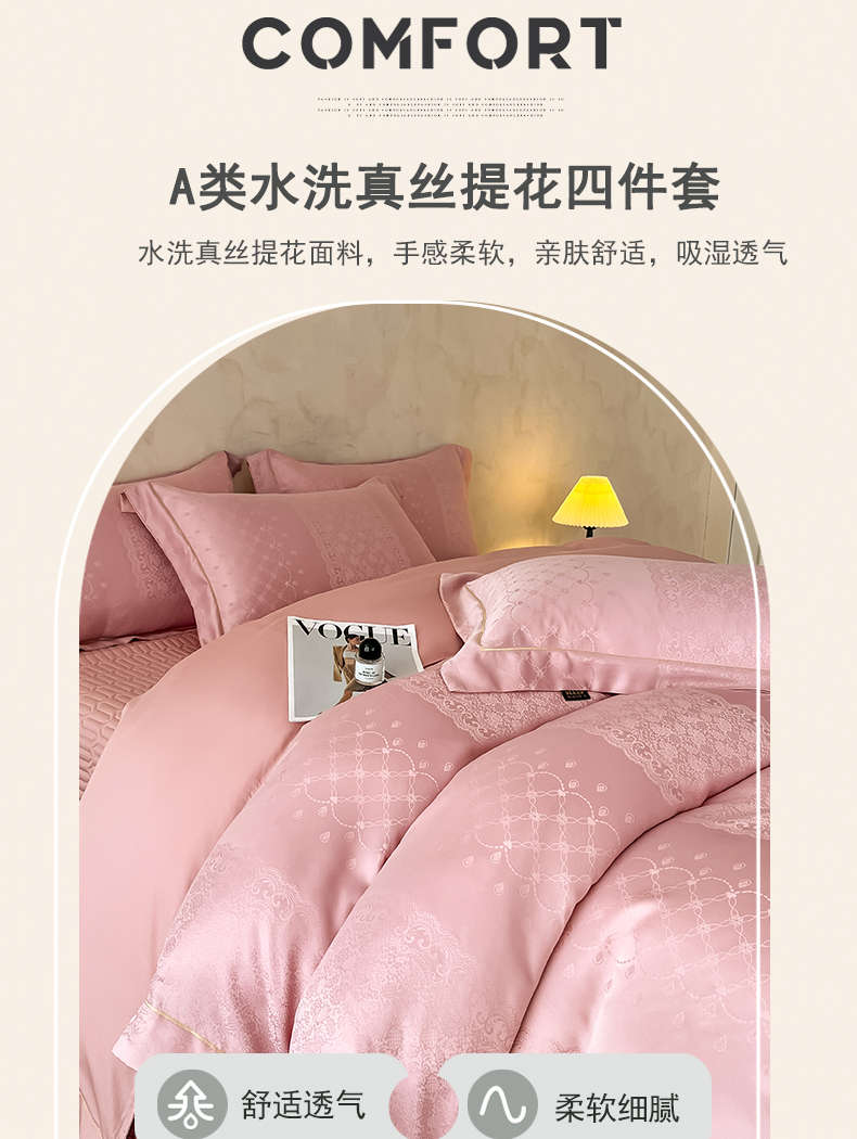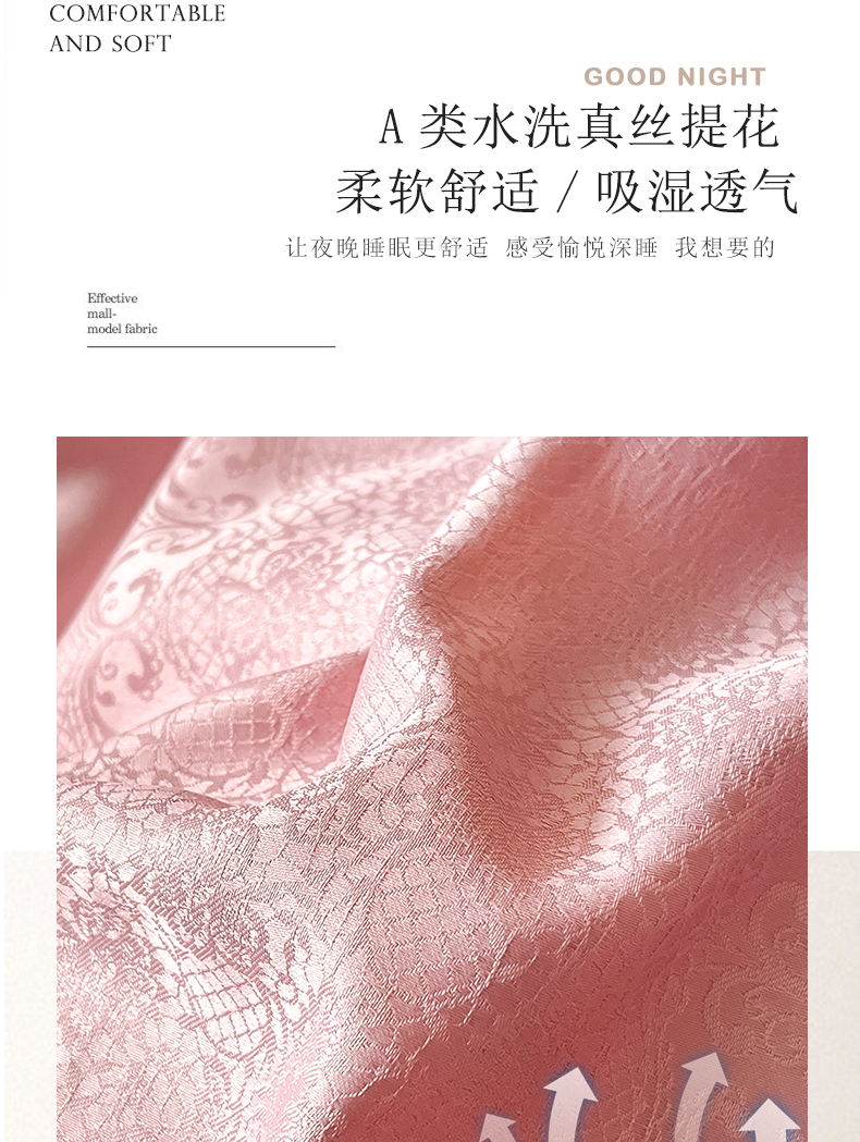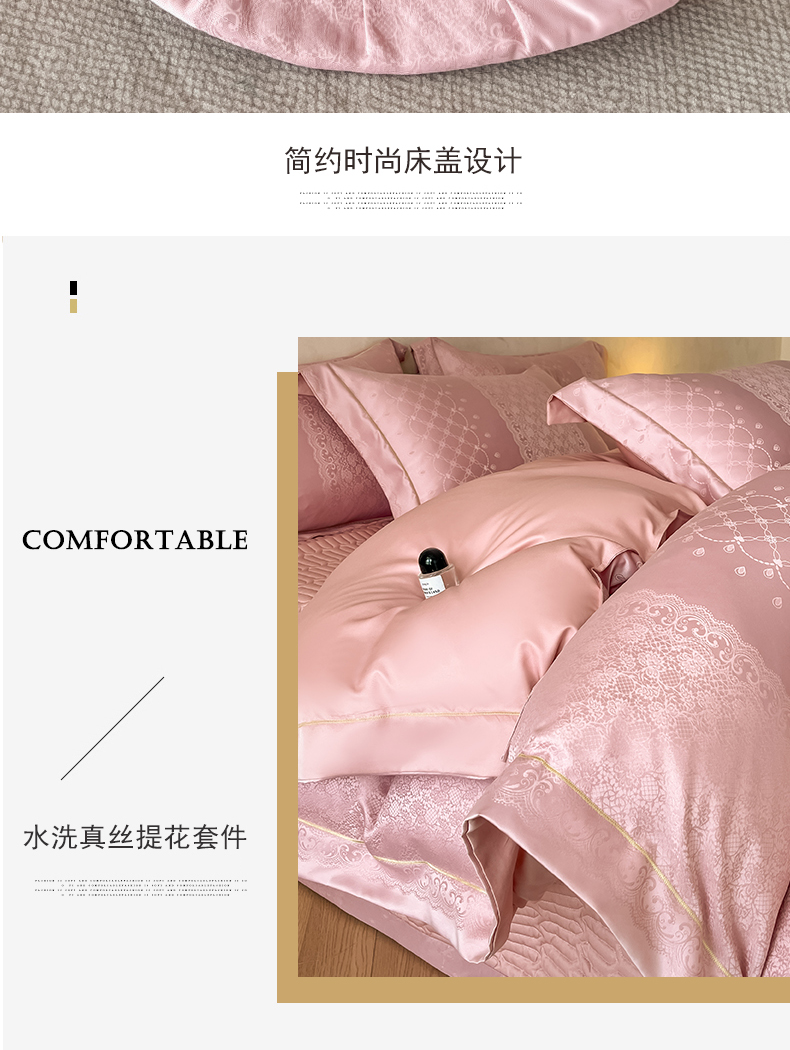 商品名称:大麦家纺 2026新款水洗真丝提花床盖四件套丝韵繁花 丝韵繁花-豆沙色