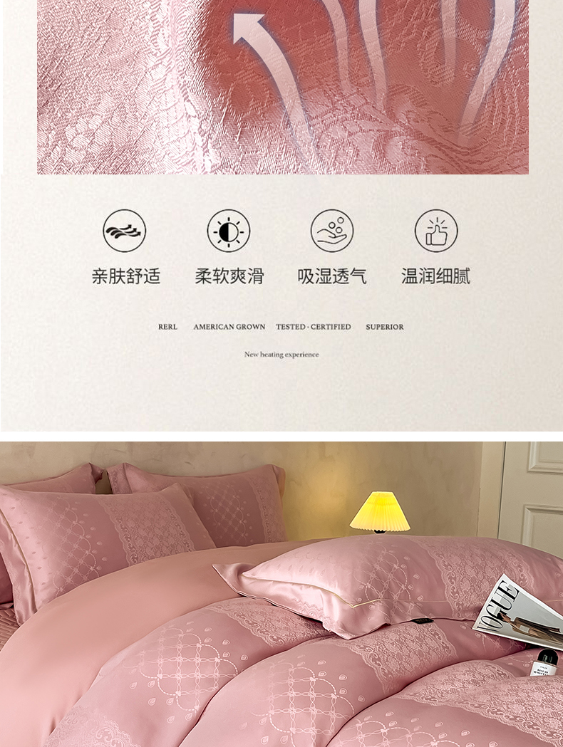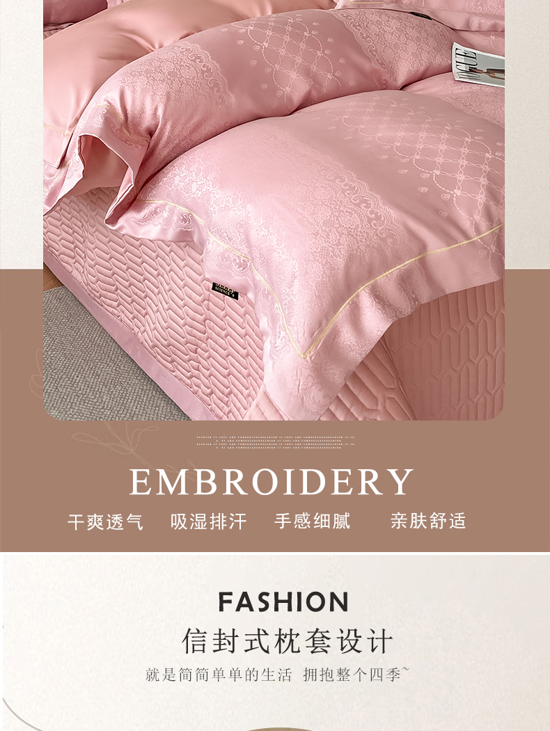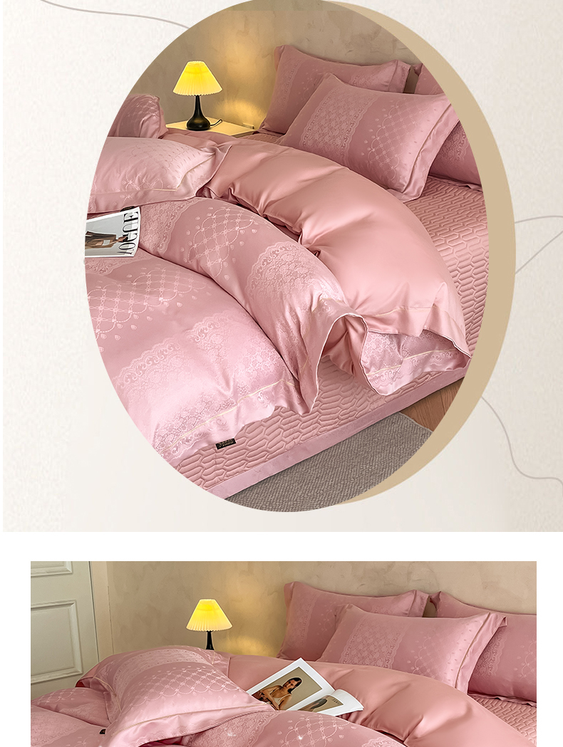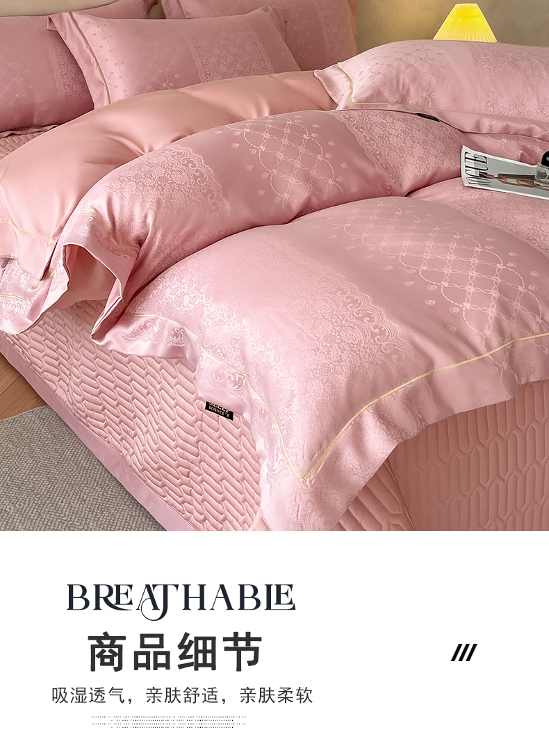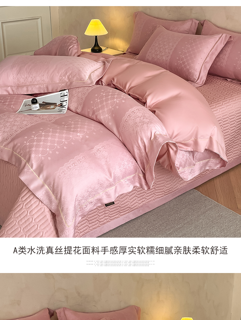 (总)大麦家纺 2026新款法式花边天丝床盖四件套,浮光滟,浮生如梦,流虹霰,霞月韵