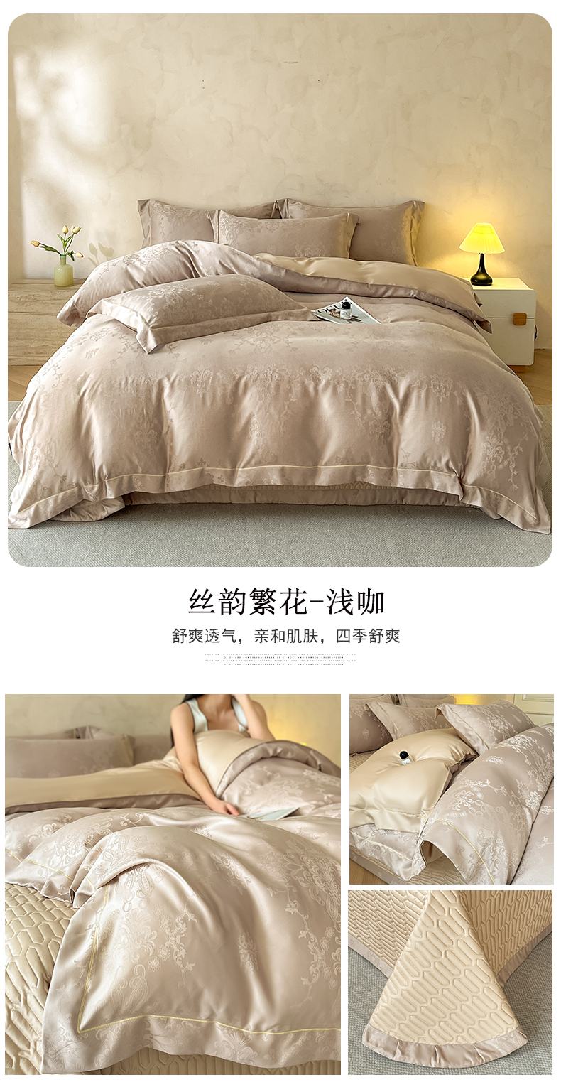 (总)大麦家纺 2026新款水洗真丝提花床盖四件套丝韵繁花,丝韵繁花-豆沙色,丝韵繁花-米黄,丝韵繁花-浅灰,丝韵繁花-浅咖,丝韵繁花-深灰,丝韵繁花-香槟金,丝韵繁花-象牙白