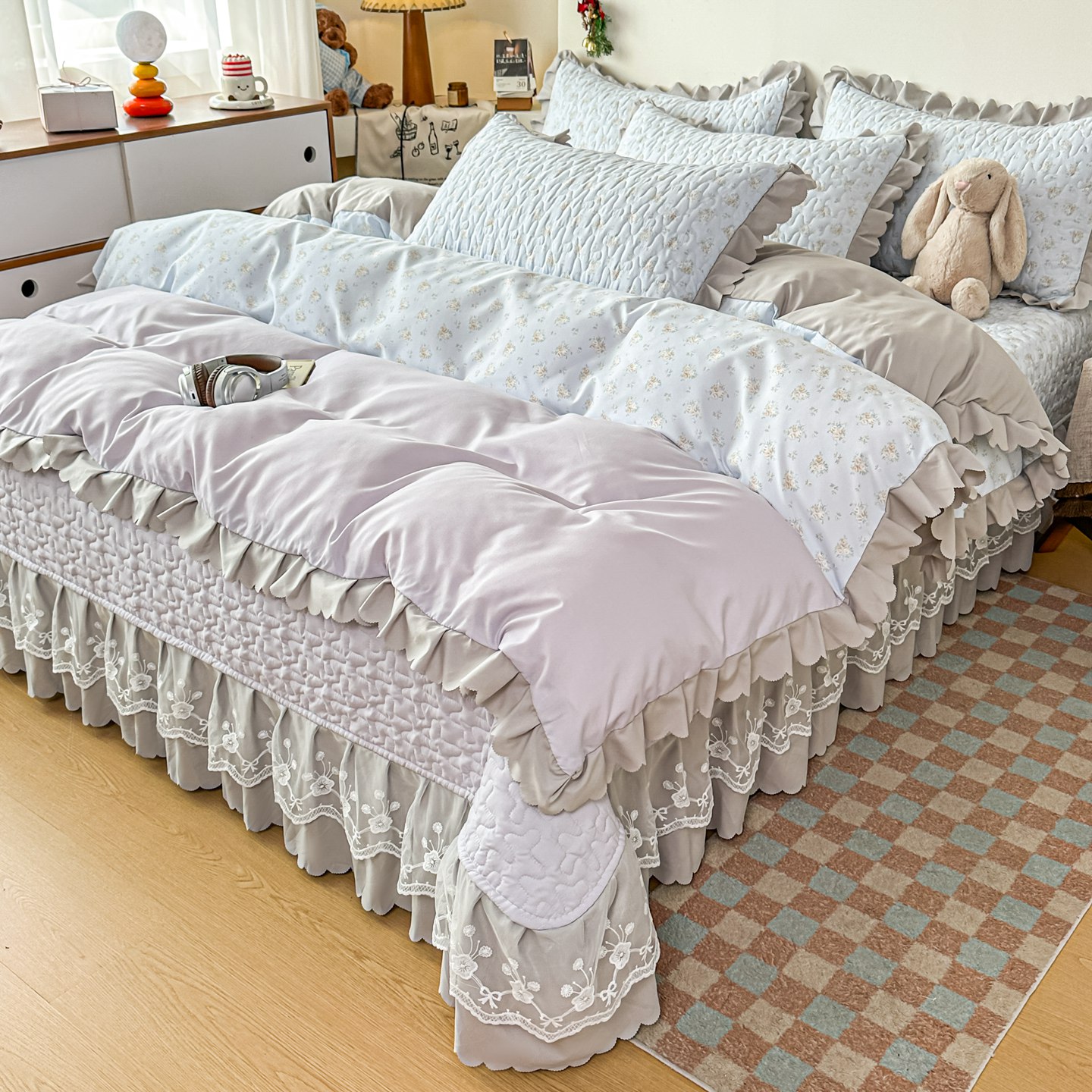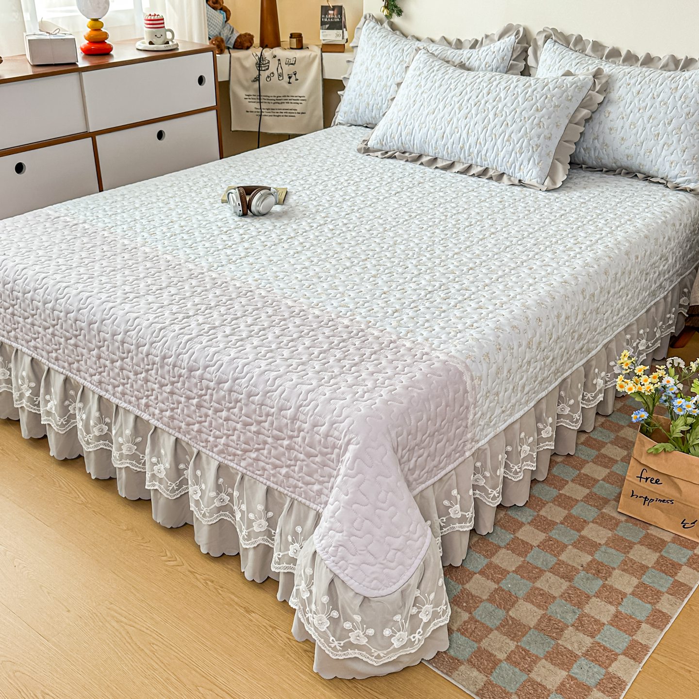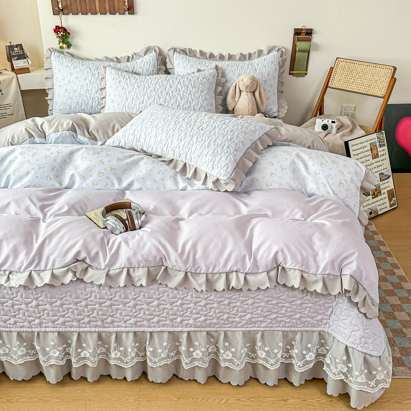 (总)雅眠居 2026新款直播爆款古法仿棉双层蕾丝花边床盖四件套,彩格-粉,诗意,秘境-紫,小福星,秘境-灰,紫萱,胭花集,小时光,彩格-蓝,彩格-灰,彩格-绿,花语,花满满,彩格-紫