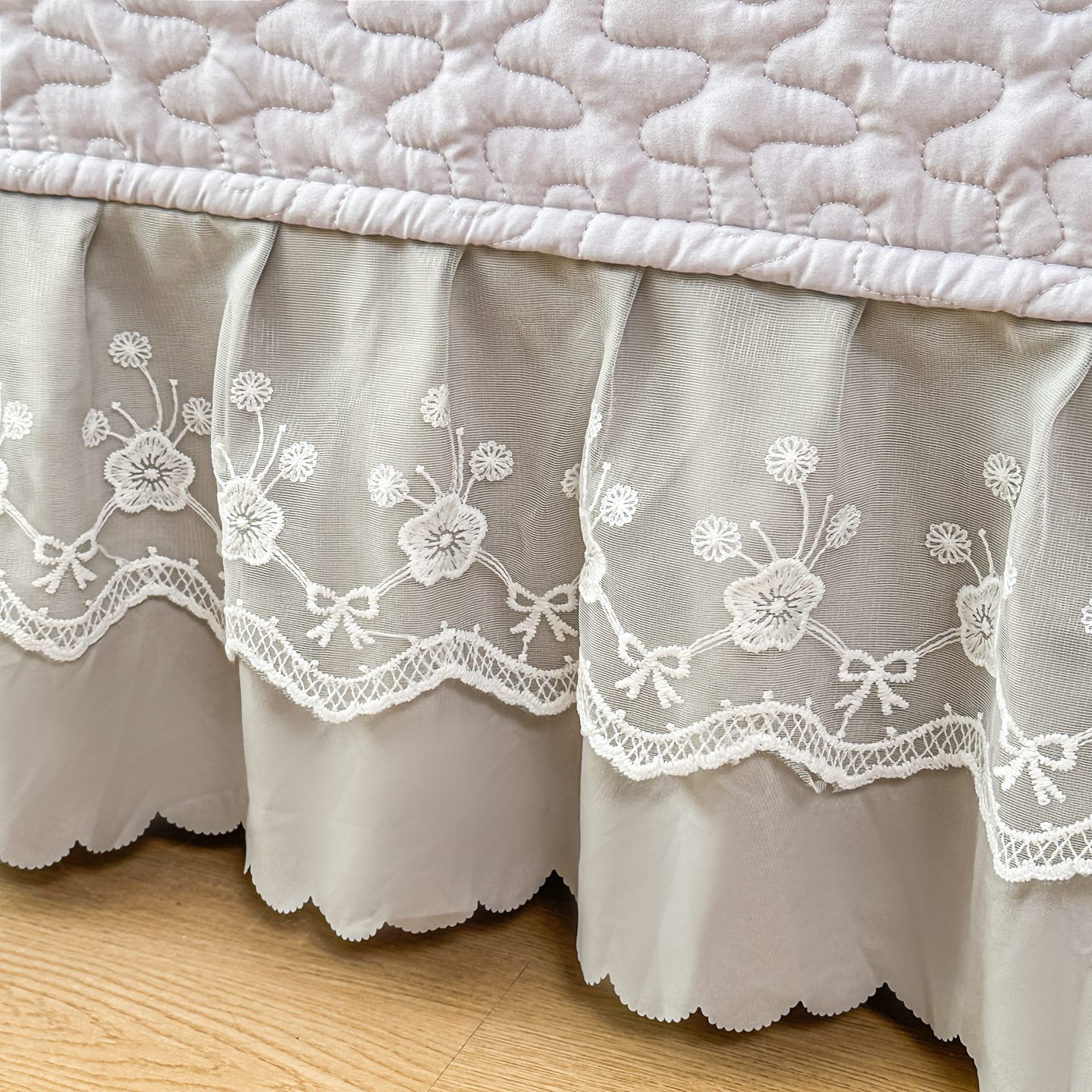 雅眠居 2026新款直播爆款古法仿棉双层蕾丝花边床盖四件套 秘境-灰