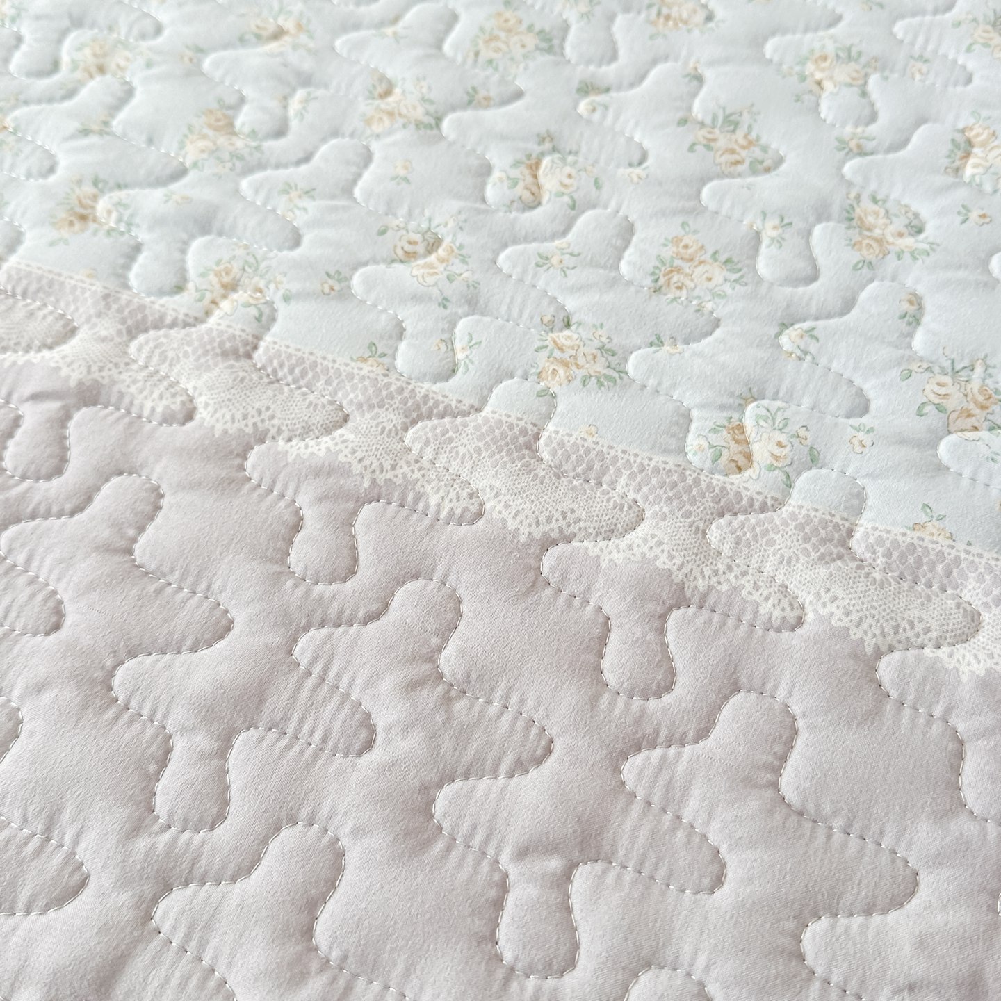 • 91家纺网 家纺一手货源 找家纺 雅眠居 2026新款直播爆款古法仿棉双层蕾丝花边床盖四件套 秘境-灰