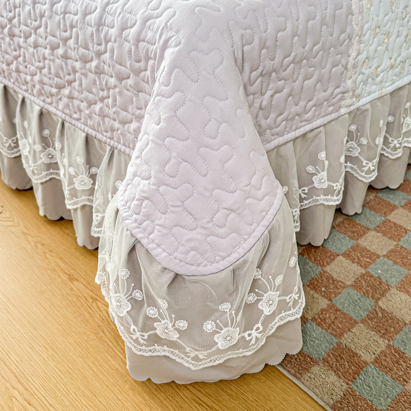 • 91家纺网 家纺一手货源 找家纺 (总)雅眠居 2026新款直播爆款古法仿棉双层蕾丝花边床盖四件套,彩格-粉,诗意,秘境-紫,小福星,秘境-灰,紫萱,胭花集,小时光,彩格-蓝,彩格-灰,彩格-绿,花语,花满满,彩格-紫