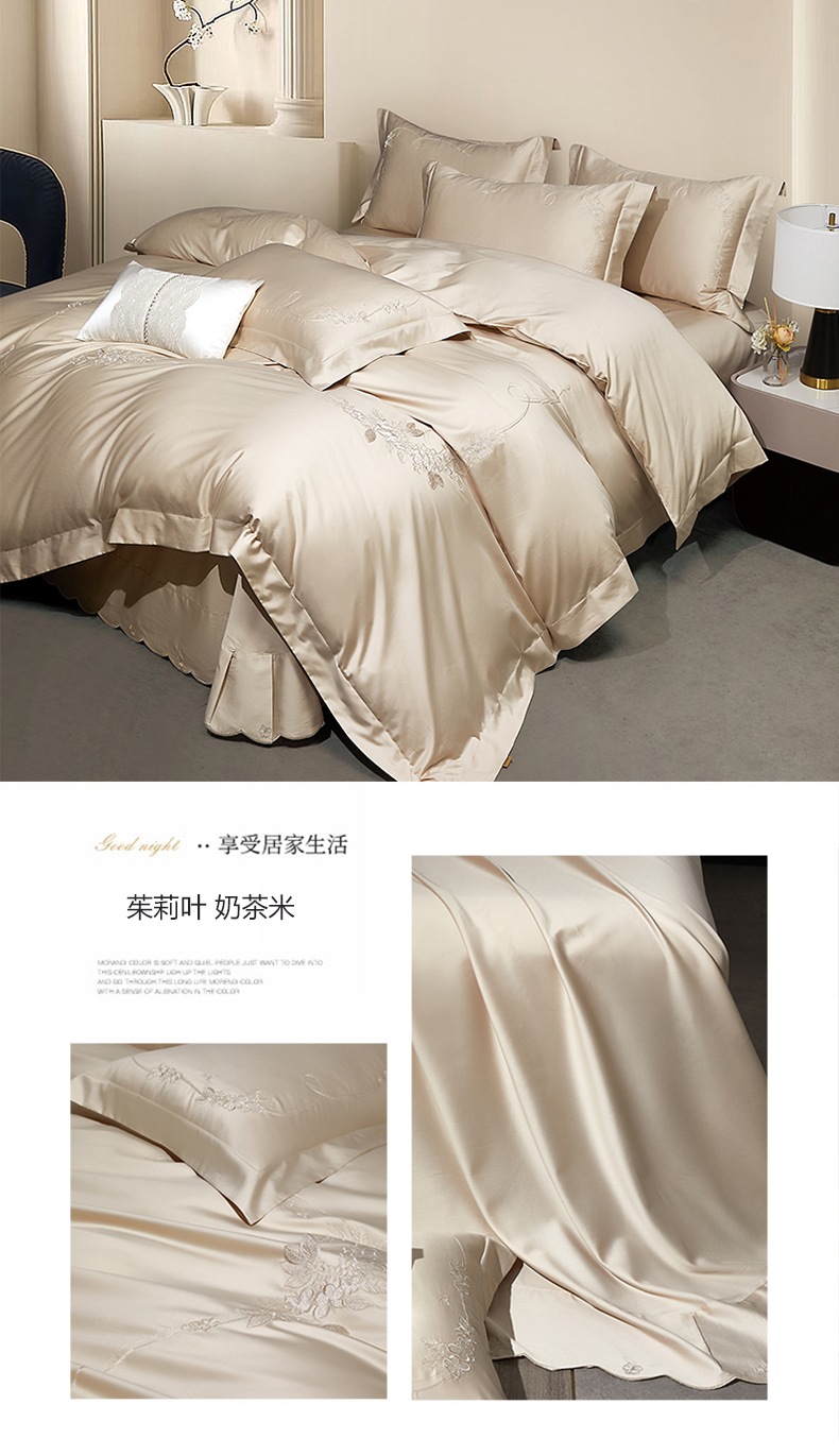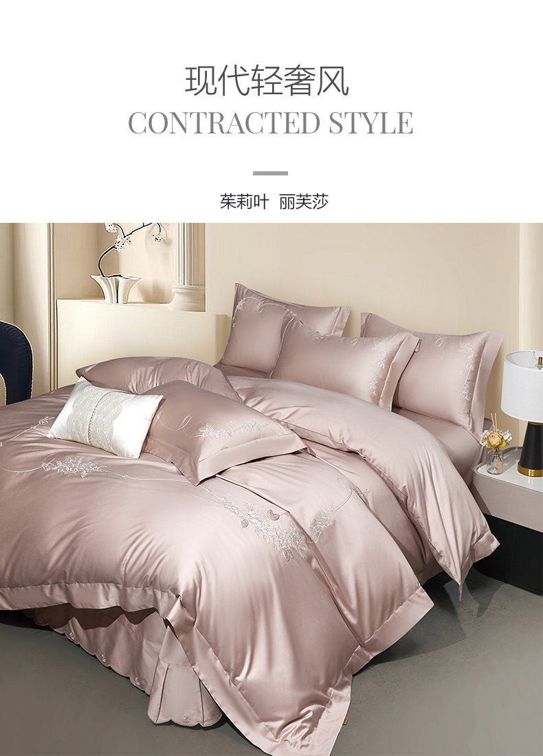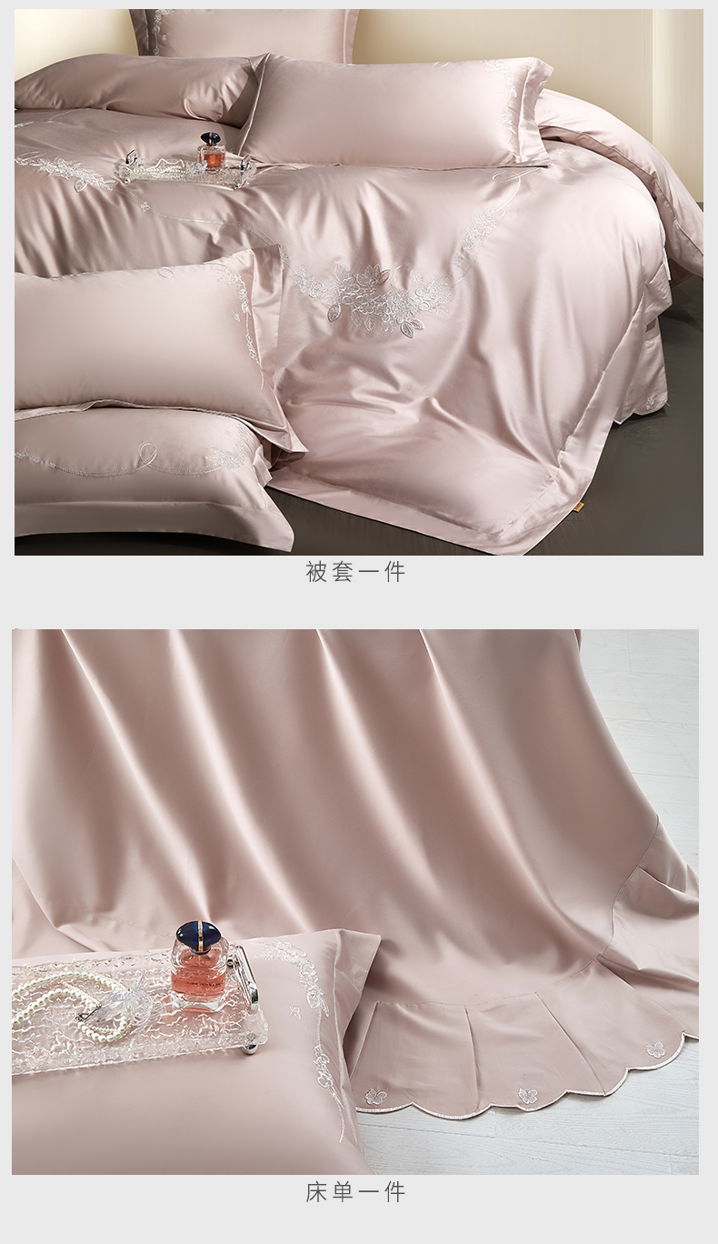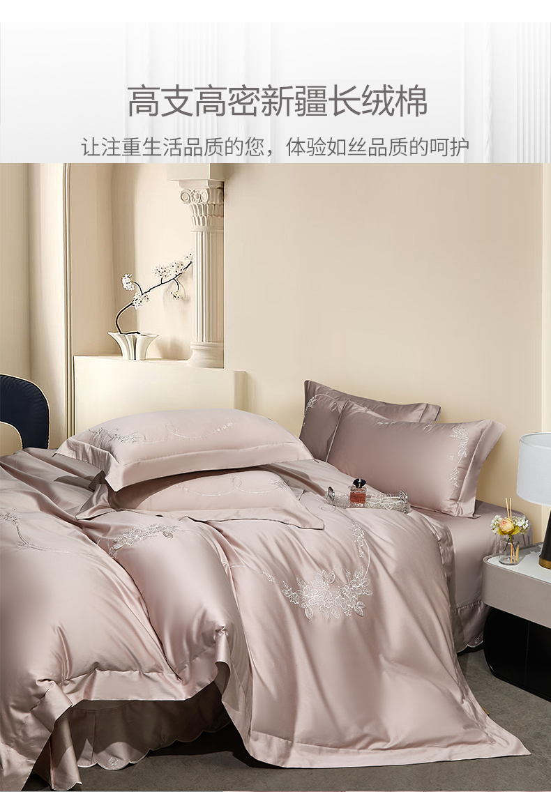(总)诗黛尔 2026春夏新款长绒棉刺绣四件套黎境系列,黎境-香槟金,黎境-极光蓝,黎境-卡其色,黎境-落樱粉,黎境-绅士灰