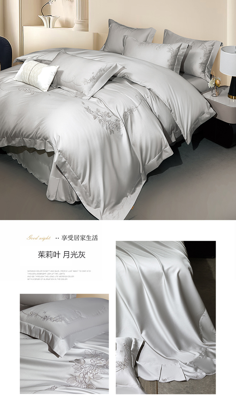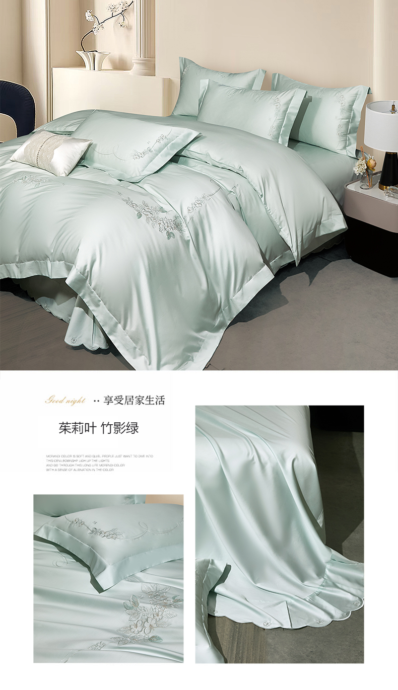 (总)诗黛尔 2026春夏新款60S长绒棉刺绣雅姿系列四件套,雅姿- 浅茶杏,雅姿-丁香紫,雅姿-豆绿,雅姿-粉豆沙,雅姿-粉玉,雅姿-红豆沙,雅姿-天蓝,雅姿-银灰