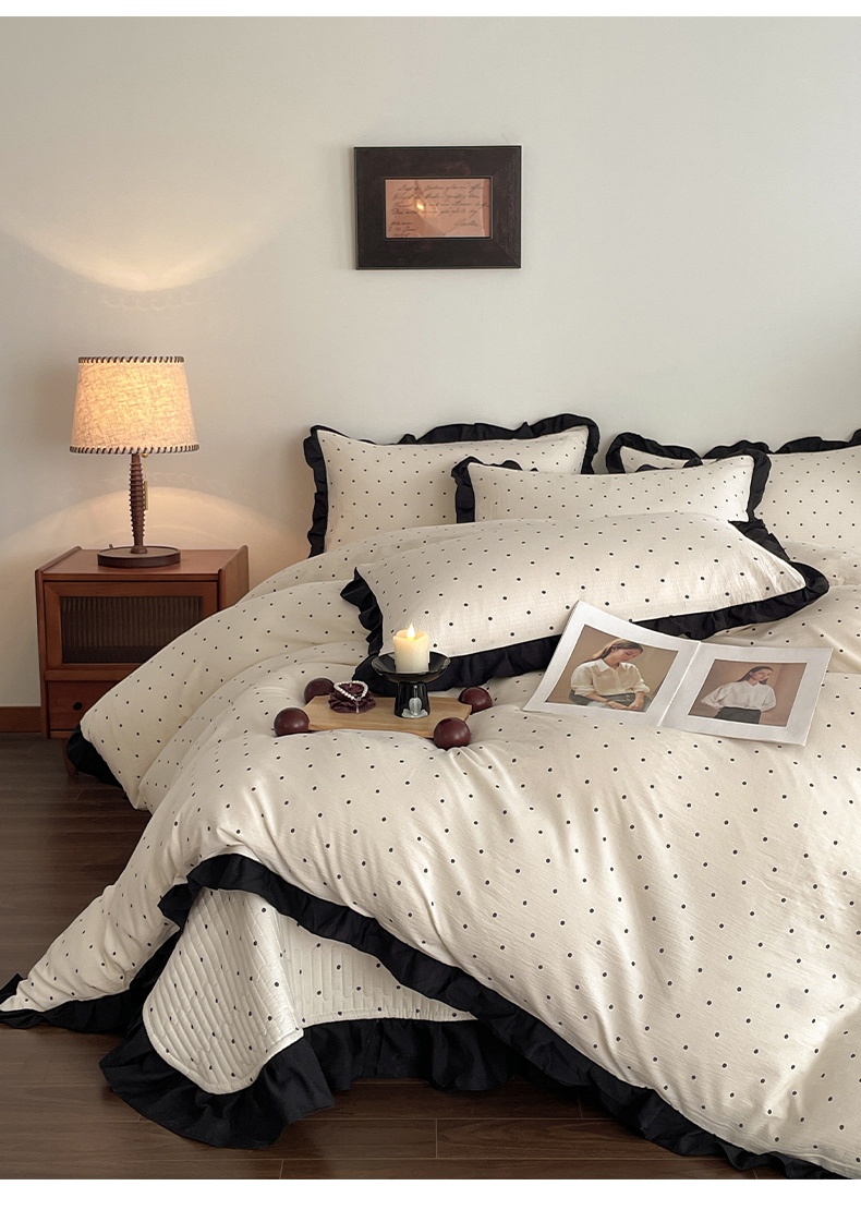 (总)同田家纺 2024新款泡泡棉印花蕾丝工艺四件套,萱花,樱桃,郁金香,竹子熊猫,朵朵花开,黑樱桃,花花小兔,花园,可爱猫,浪漫花季,绿林,莫奈花园,硕果累累,苏菲庄园