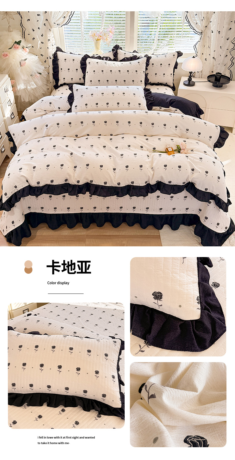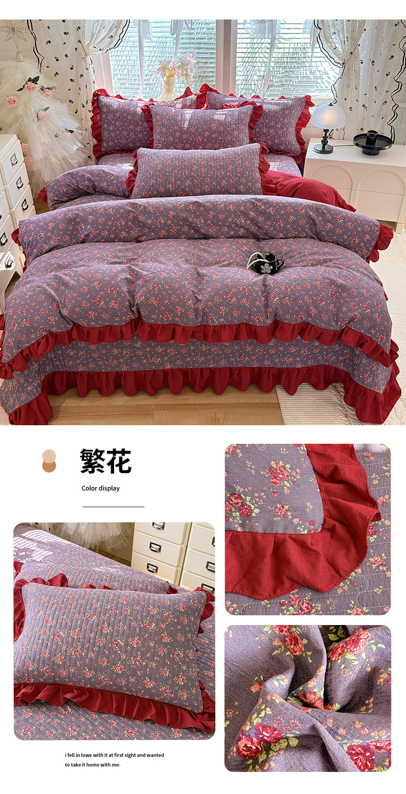 当前位置: 91家纺网 > 商品网购 > 床品套件 > 四件套 > 水洗棉四件套 > 唐人居 2026春夏新款皱皱水洗棉花边床盖四件套 半亩花田