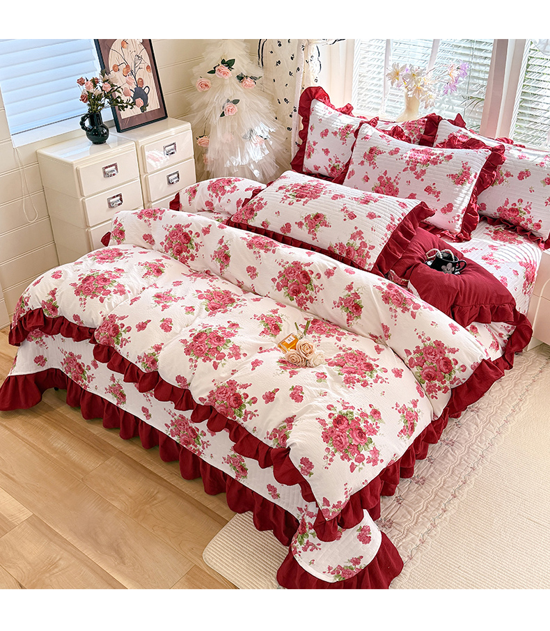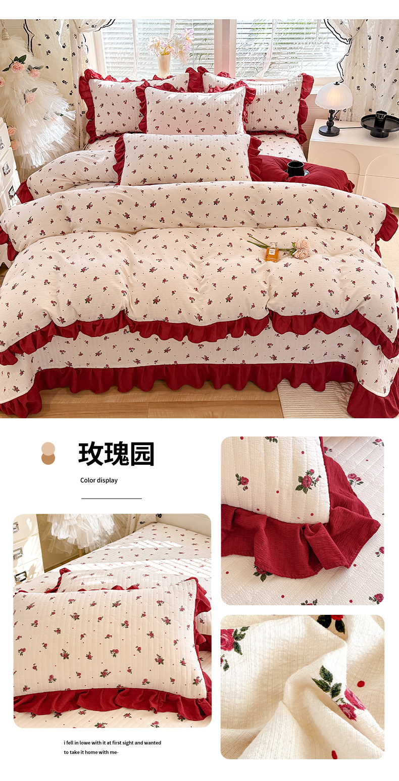 当前位置: 91家纺网 > 商品网购 > 床品套件 > 四件套 > 水洗棉四件套 > 唐人居 2026春夏新款皱皱水洗棉花边床盖四件套 音乐派对