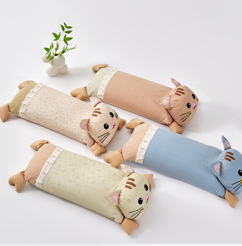 (总)蔻眠 泡芙猫-全棉双层纱刺绣荞麦护颈枕头儿童卡通枕芯,主图,泡芙猫-绿,泡芙猫-粉,泡芙猫-灰,泡芙猫-黄