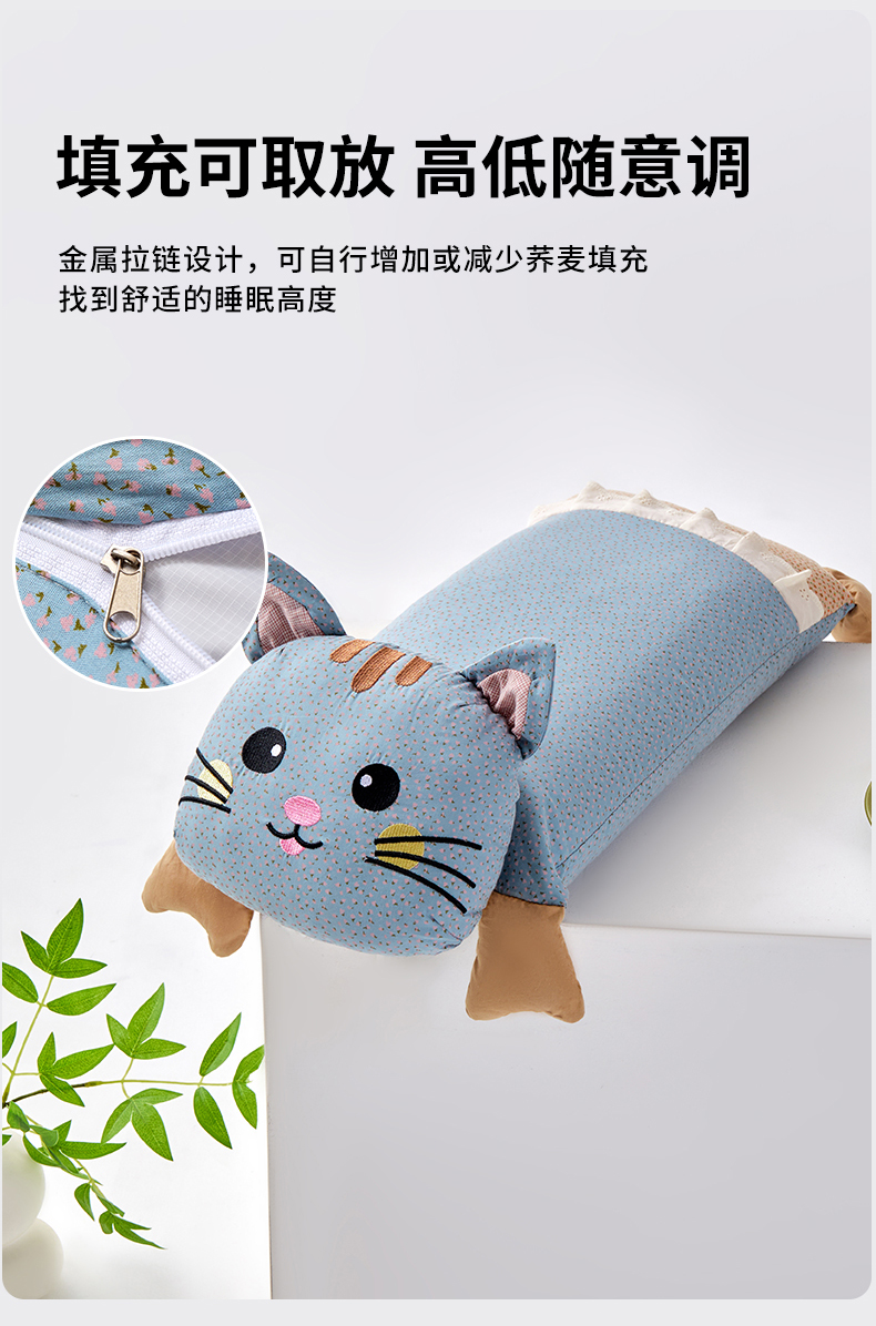 (总)蔻眠 发财猫-全棉卡通荞麦枕头儿童学生成人护颈枕芯,主图,发财猫-蓝色,发财猫-驼色,发财猫-绿色,发财猫-米色