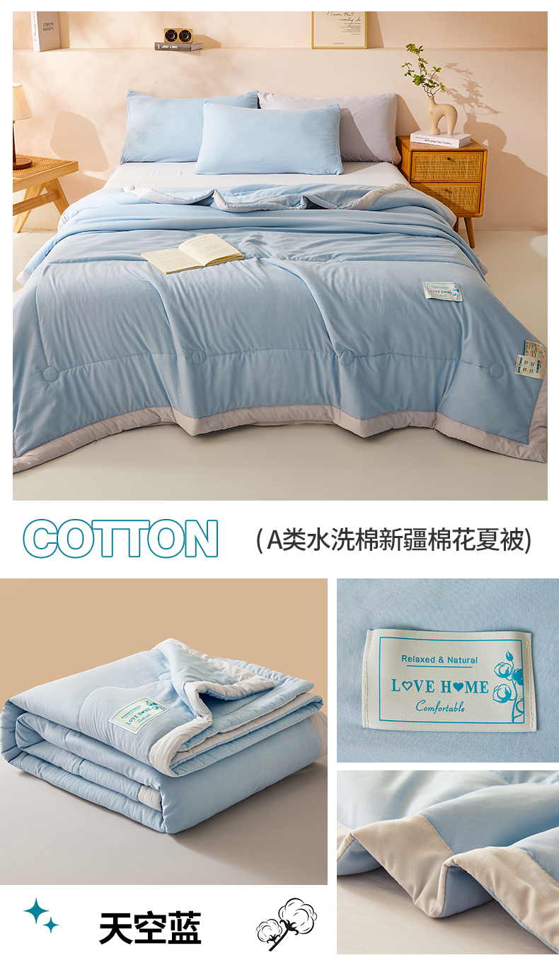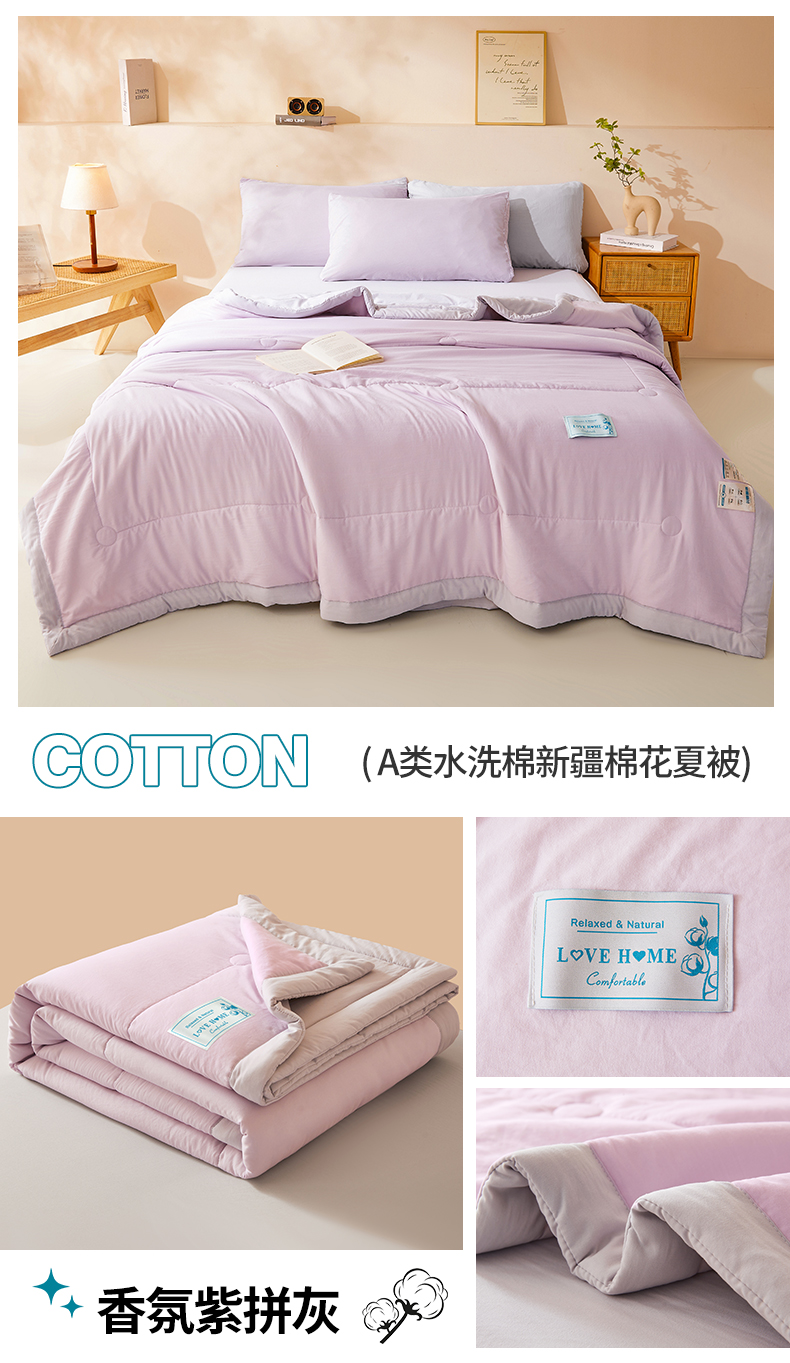 (总)罗布斯 2026新款简约纯色风水洗棉双拼夏被新疆棉花被夏凉被空调被(买家秀加微),珠光白拼蓝,青果绿拼灰,天空蓝,天空蓝拼灰,香槟咖,香槟咖拼灰,香氛紫拼灰,樱花粉,樱花粉拼果绿,月光灰