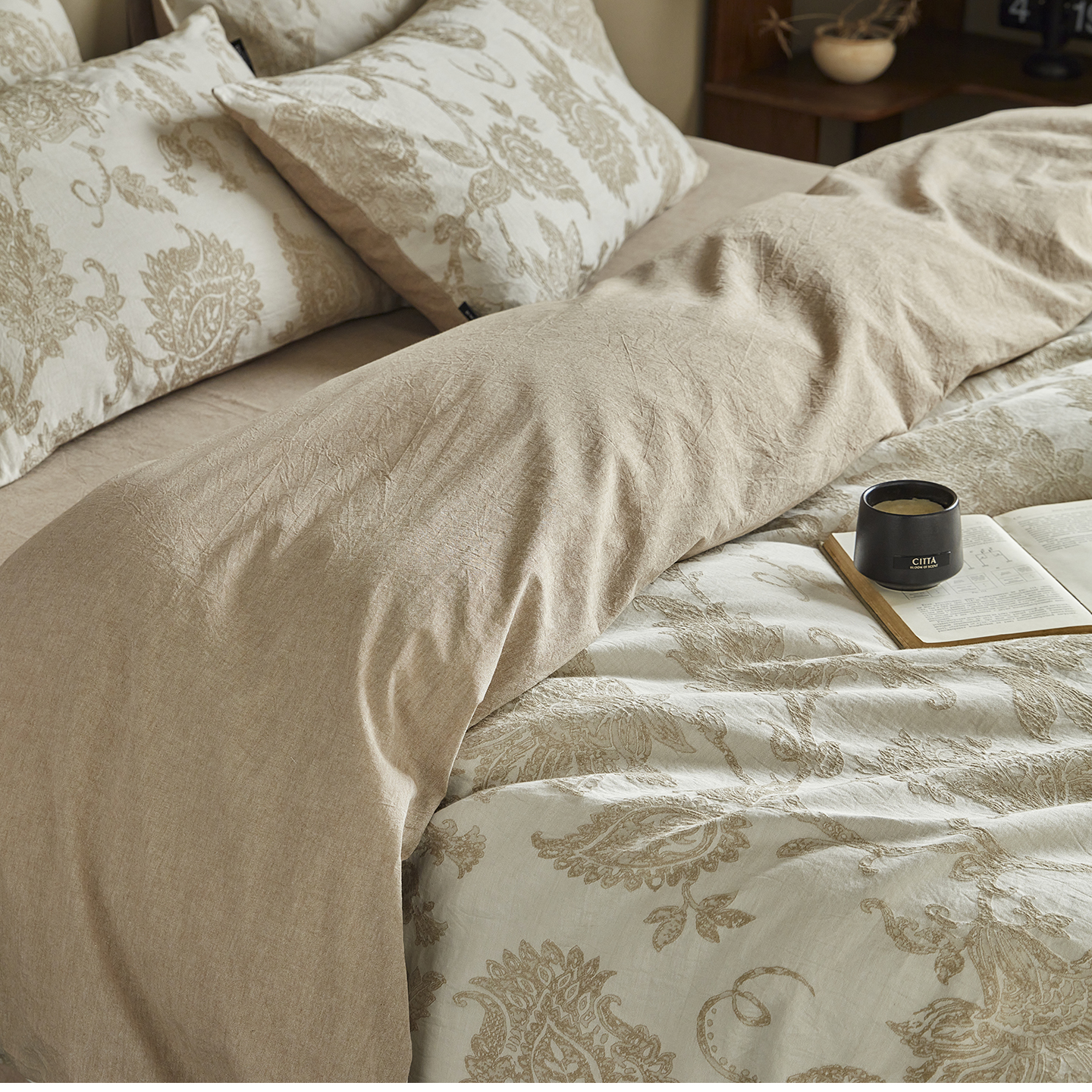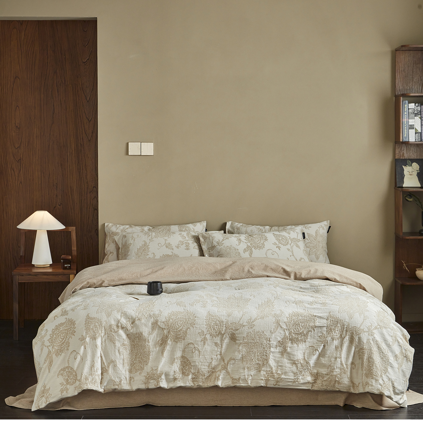 当前位置: 91家纺网 > 商品网购 > 床品套件 > 四件套 > 全棉普通四件套 > 风向标家纺 2026新款厚织提花麻感水洗全棉四件套-风格一 茉白-麻咖