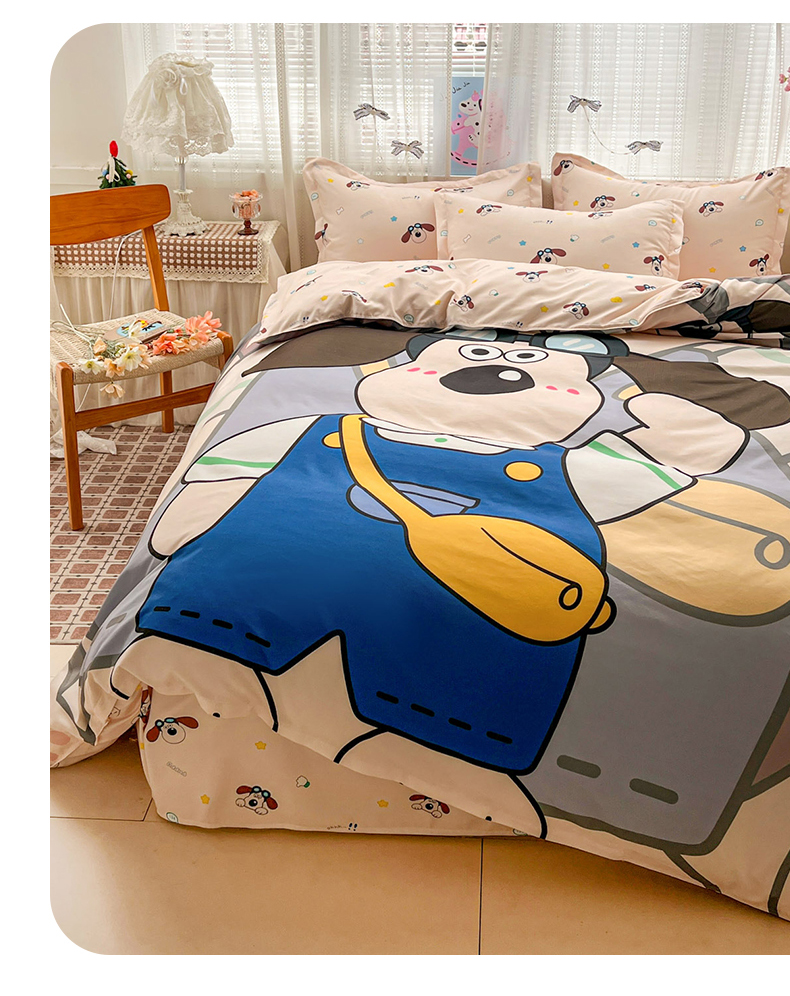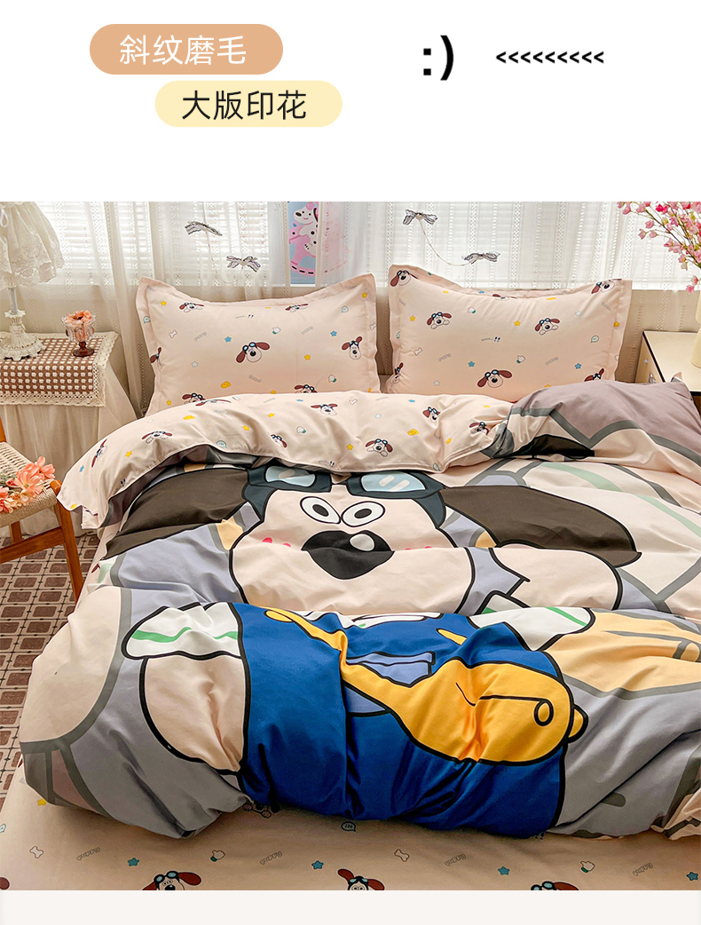 当前位置: 91家纺网 > 商品网购 > 床品套件 > 四件套 > 磨毛活性四件套 > KT猫直营店 2026新款卡通斜纹磨毛大版四件套 飞行汪