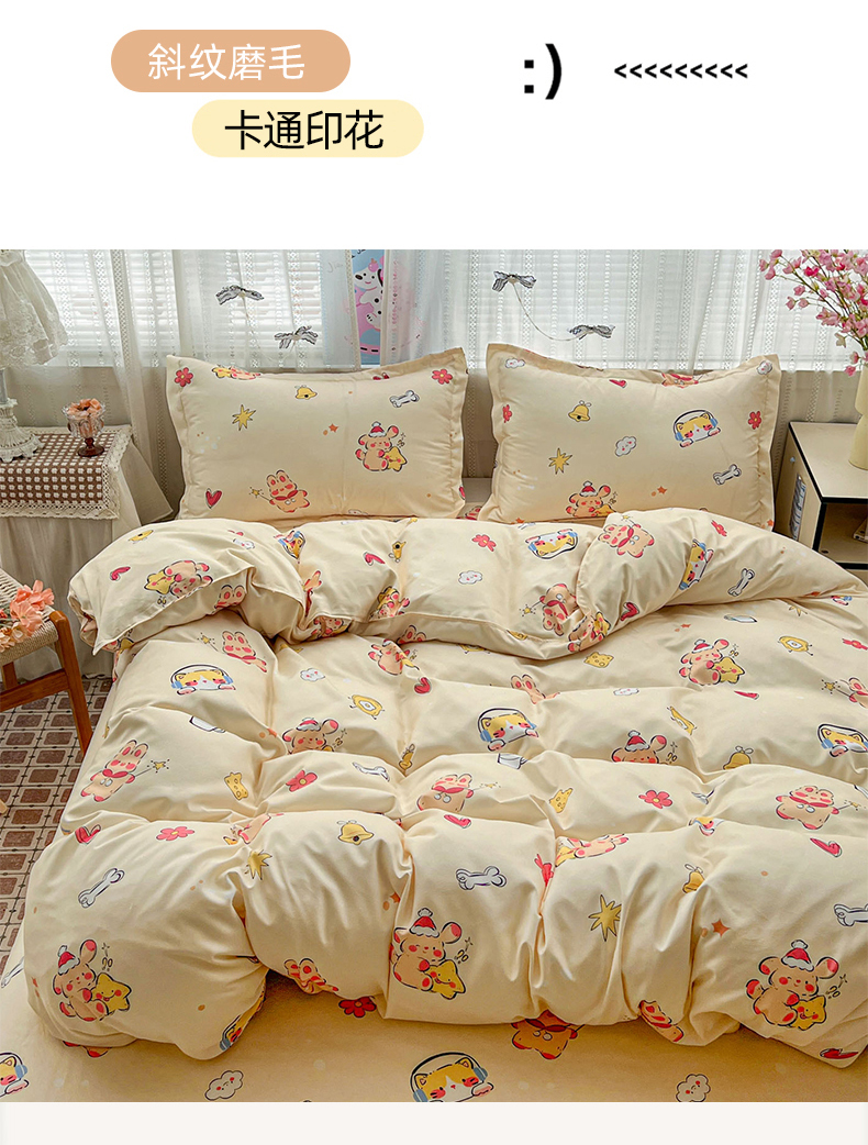 当前位置: 91家纺网 > 商品网购 > 床品套件 > 四件套 > 磨毛活性四件套 > KT猫直营店 2026新款卡通斜纹磨毛大版四件套 元气满满