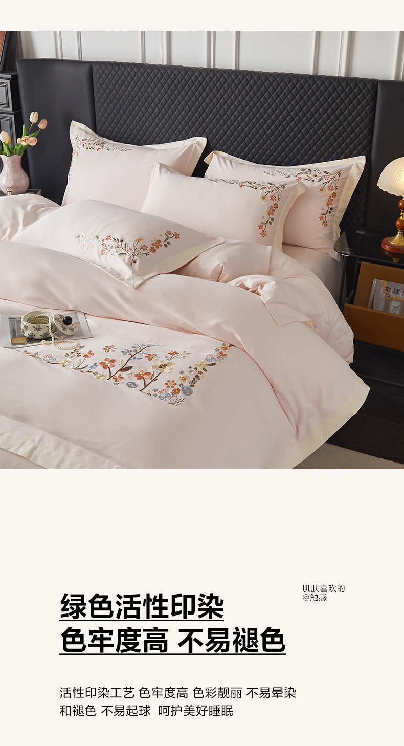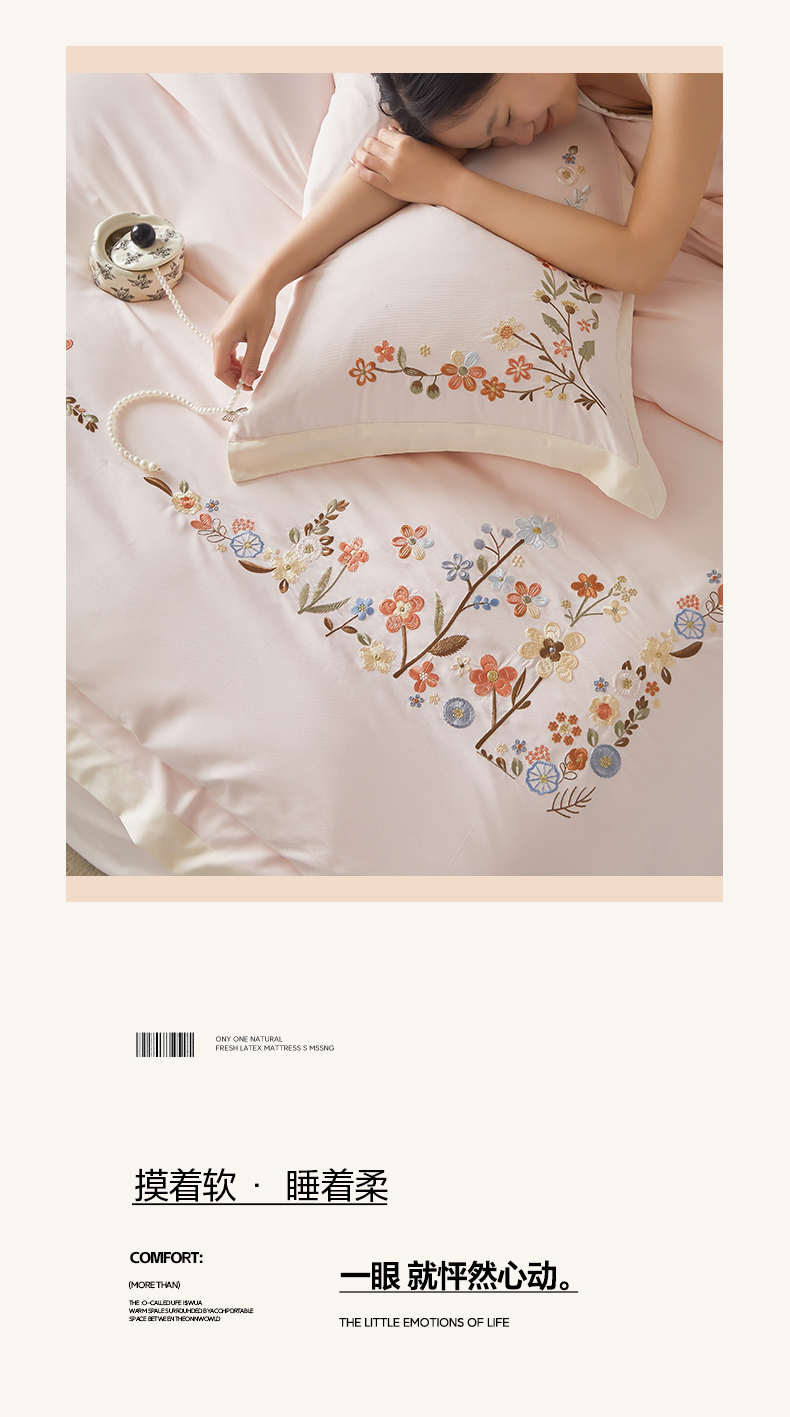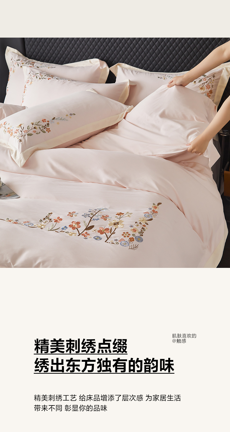 遇见家居生活馆 2026新款罗云棉刺绣四件套-春日茶会 山茶粉