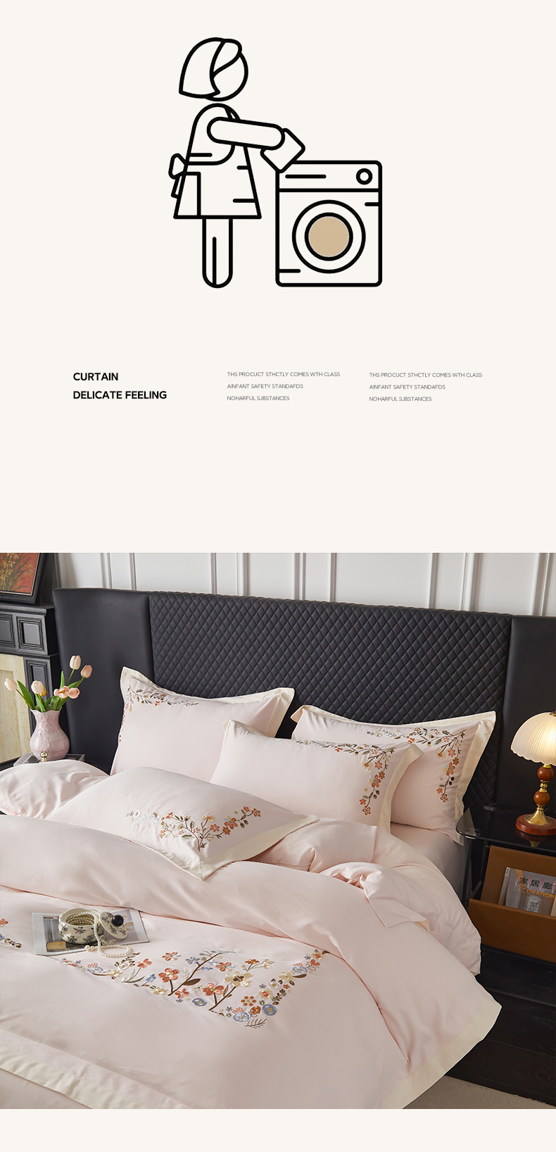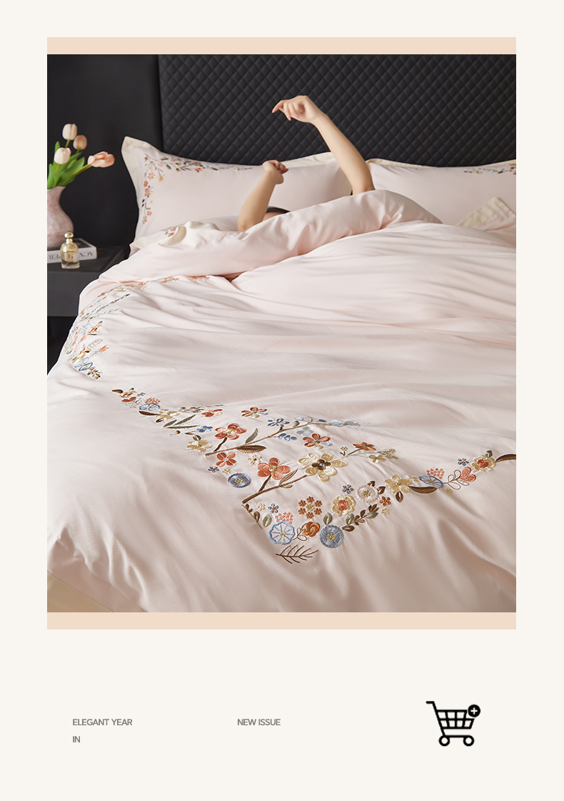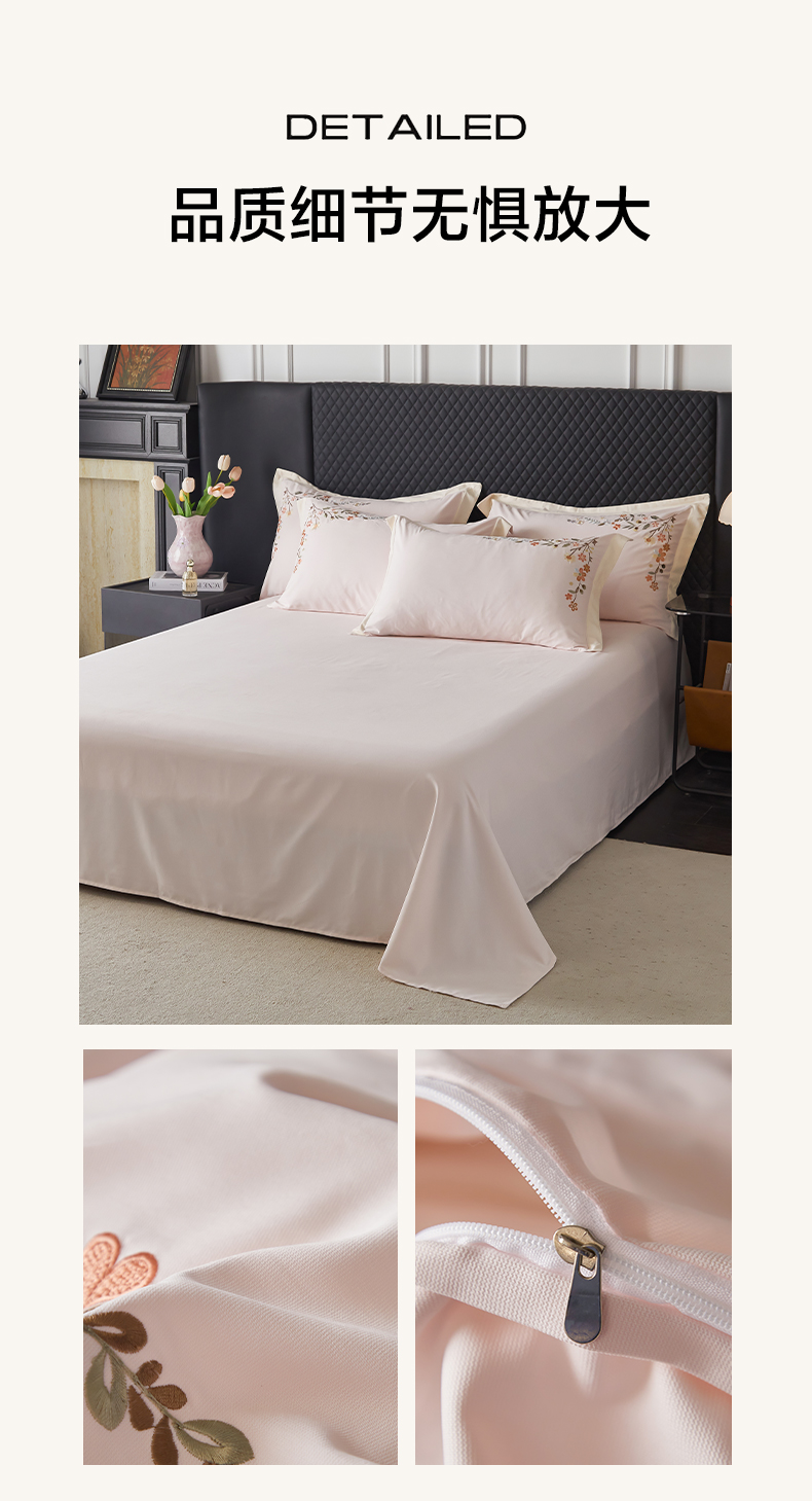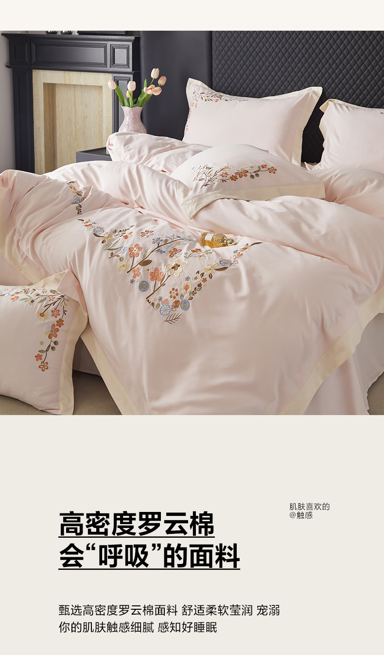 遇见家居生活馆 2026新款罗云棉刺绣四件套-春日茶会 山茶粉
